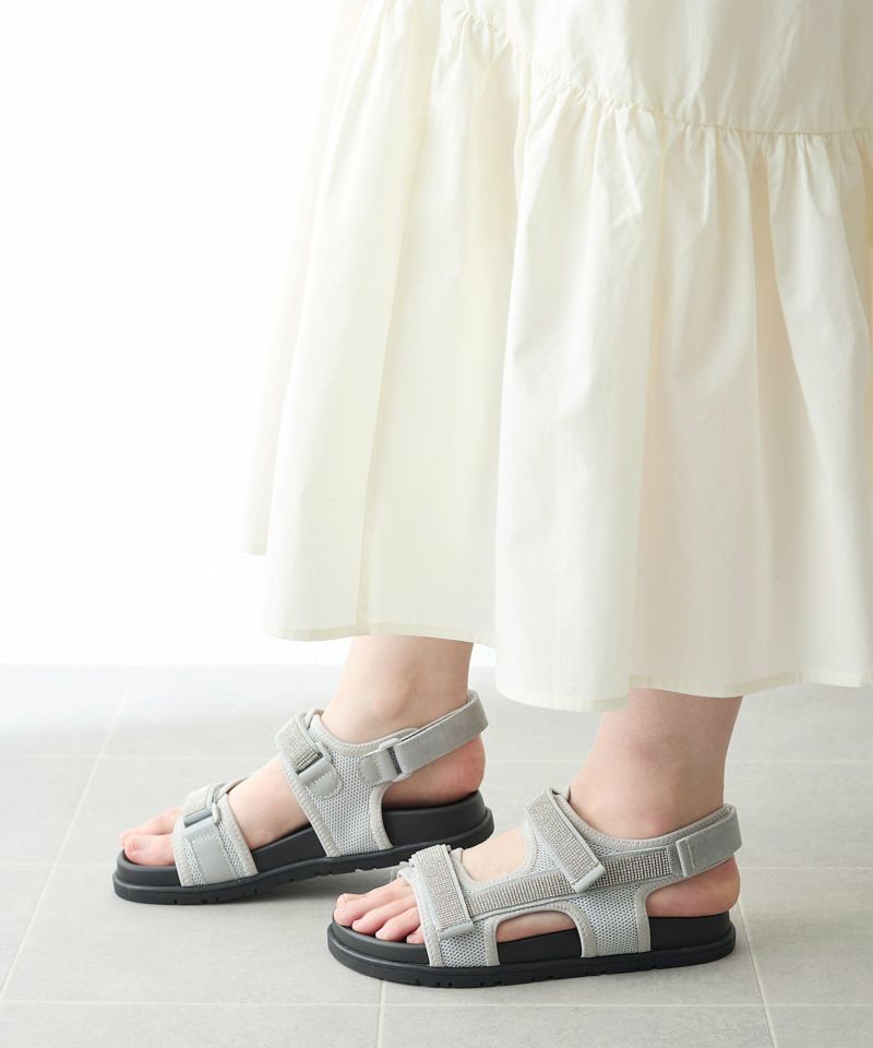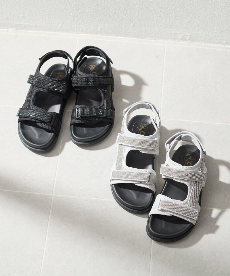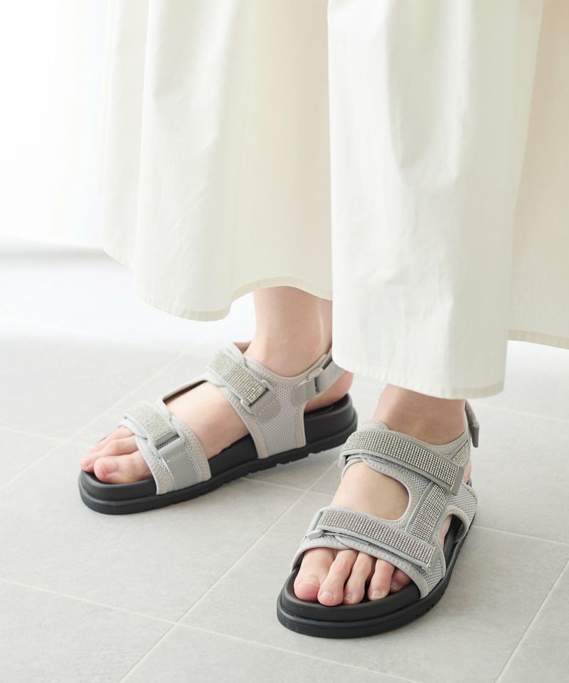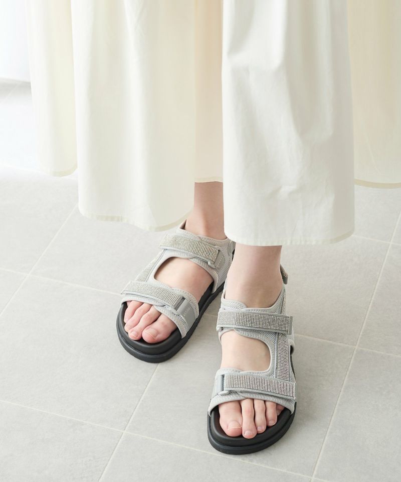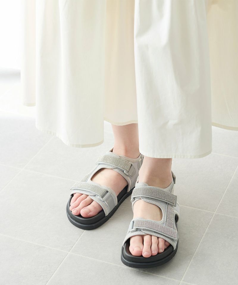 スポーツサンダルの機能性はそのままに、ビジューのきらめきで高級感をプラス。