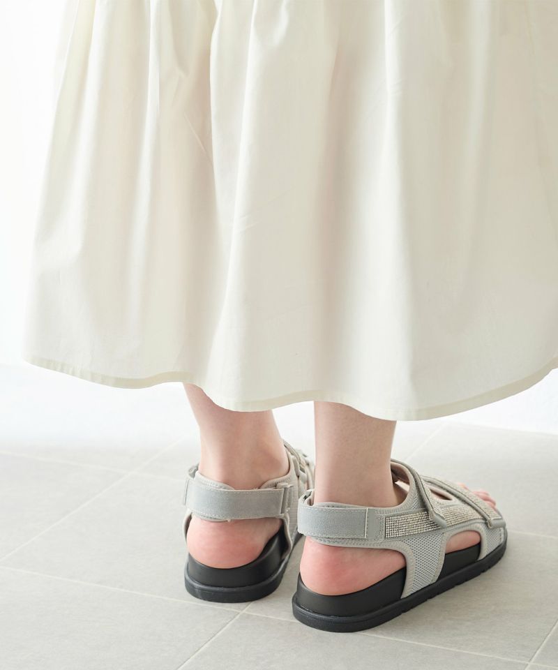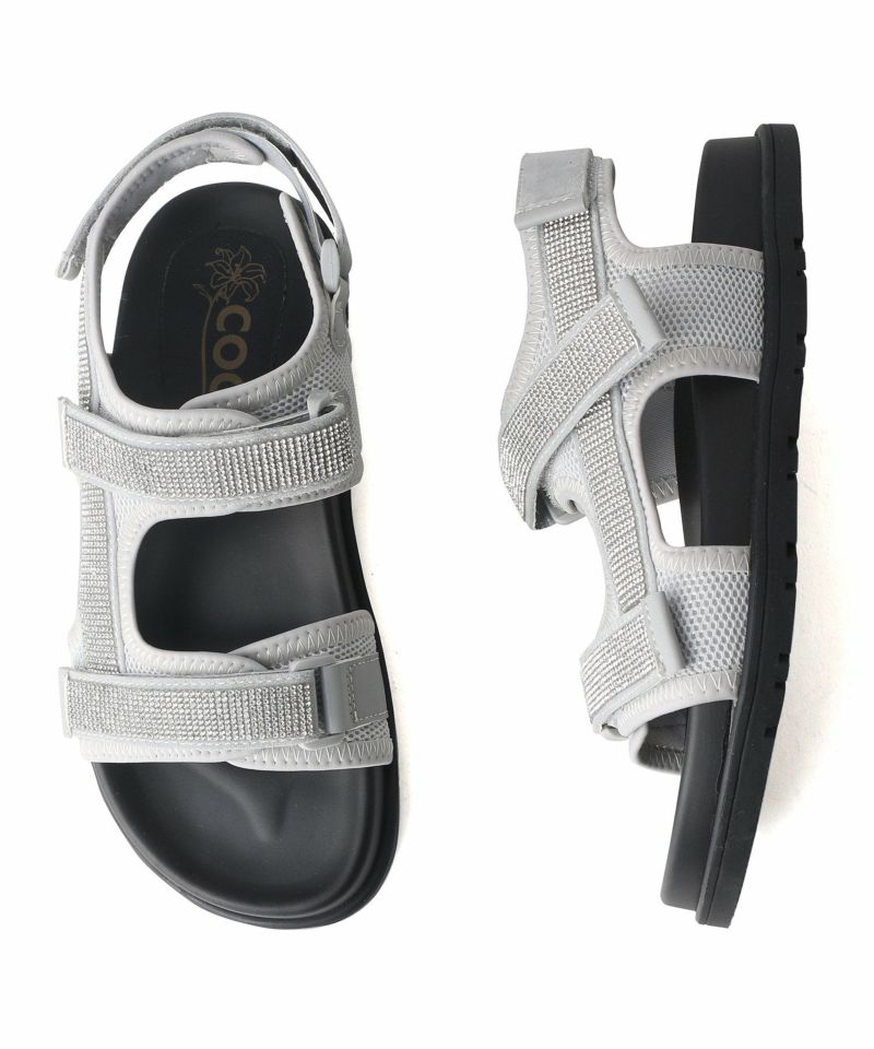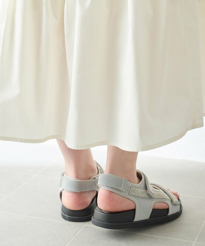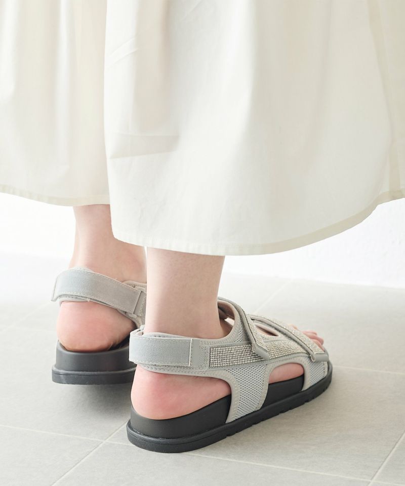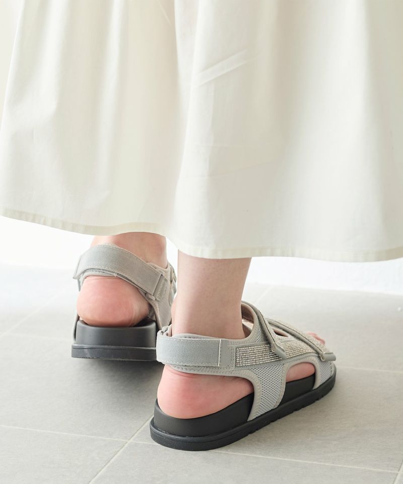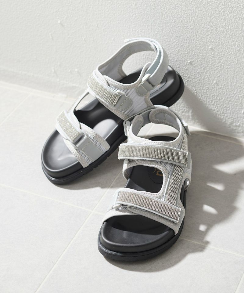 スポーツサンダルの機能性はそのままに、ビジューのきらめきで高級感をプラス。