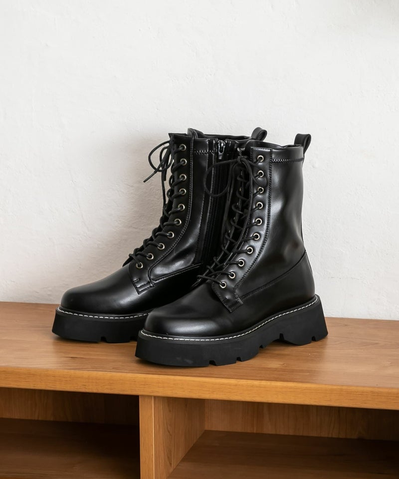 機能性 凹凸のある厚底ソールが今年らしいレースアップブーツ