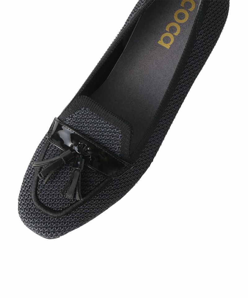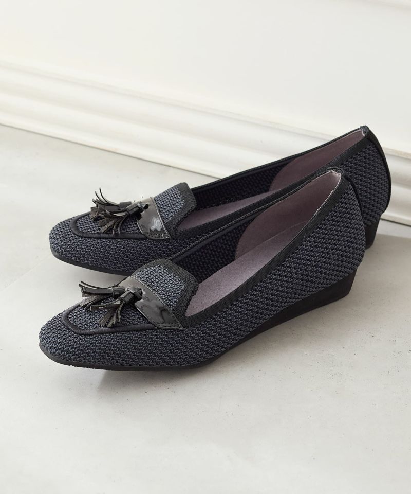 大人気の快適ニットパンプスに、タッセルで上品なアクセントを添えた一足です。