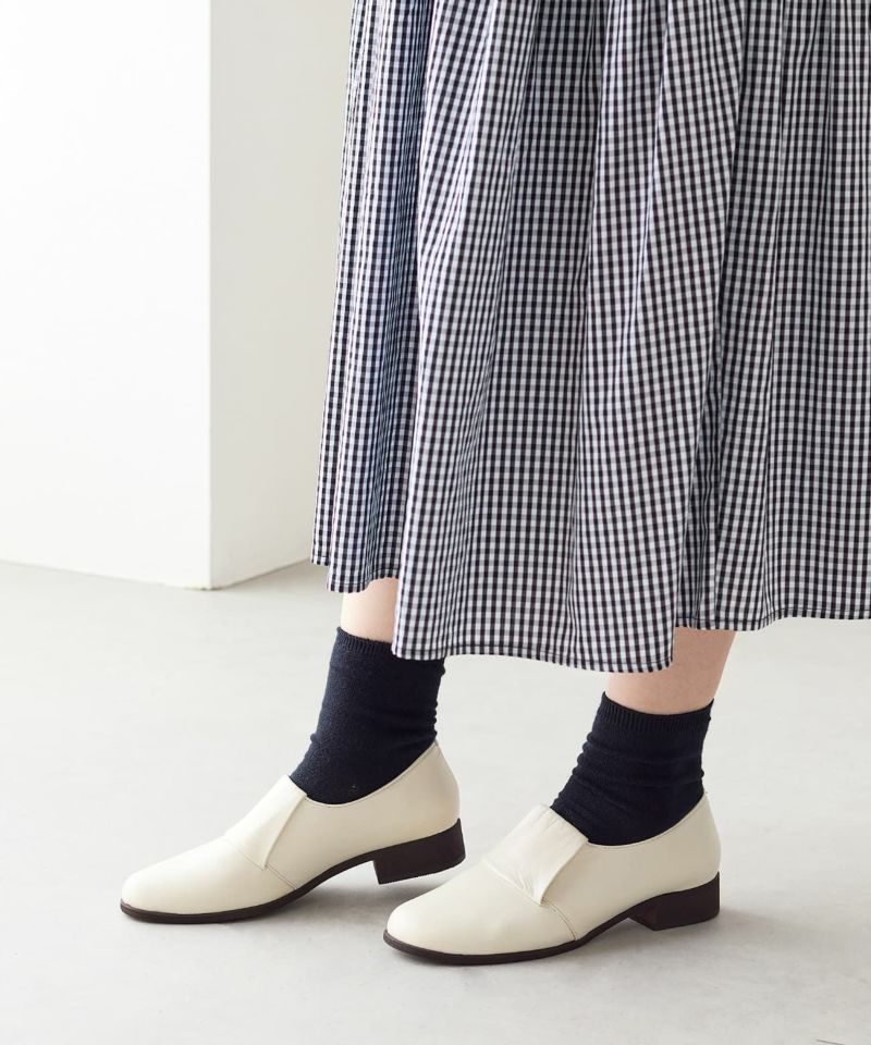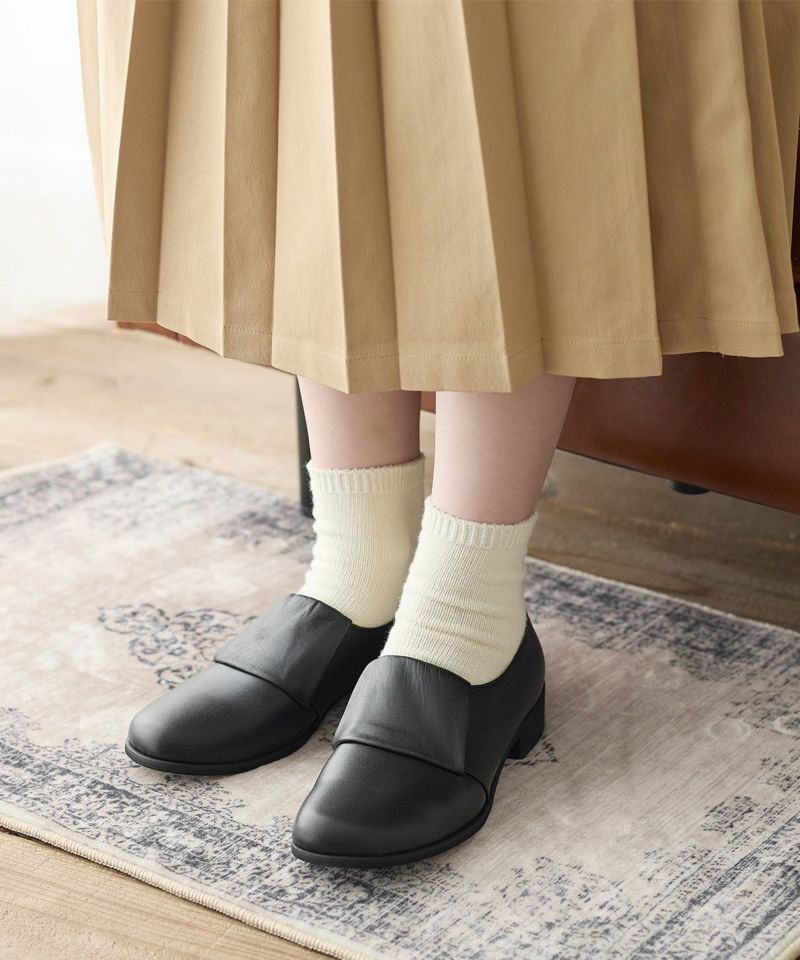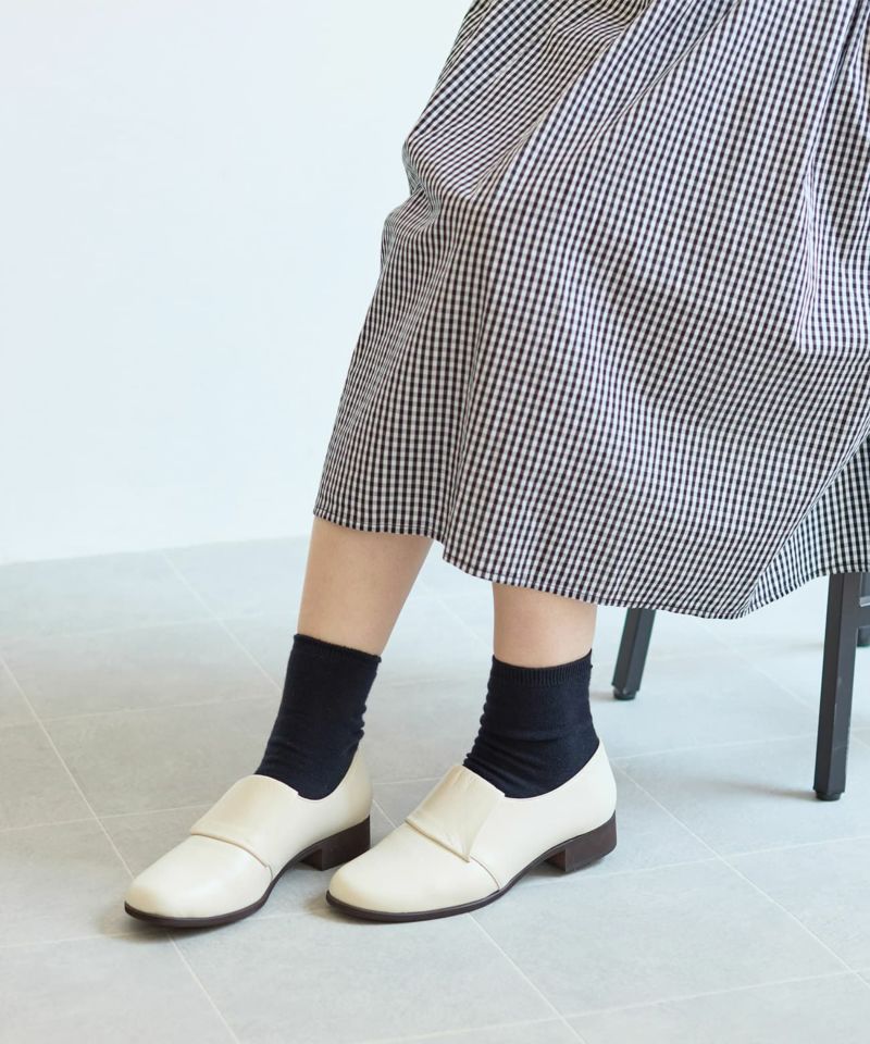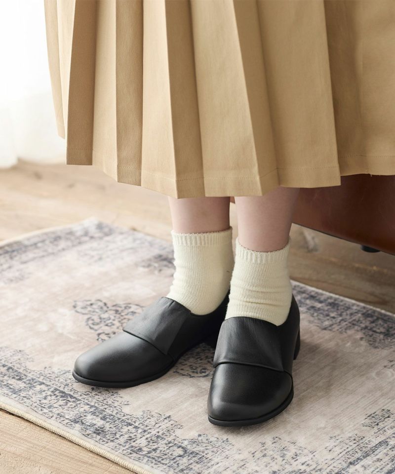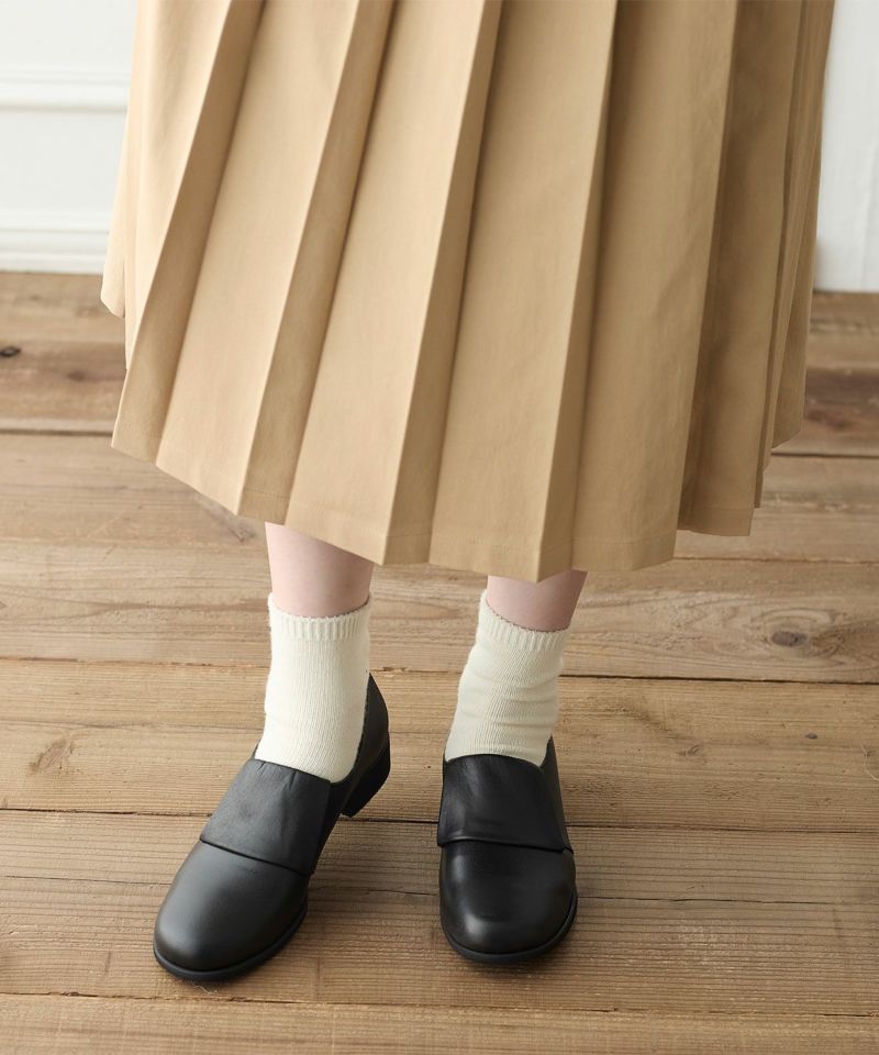 カントリーライクな素朴さのある顔立ちとぽってりとしたアッパーですが、程よいヒールできれいめコーデにもピッタリ寄り添います。