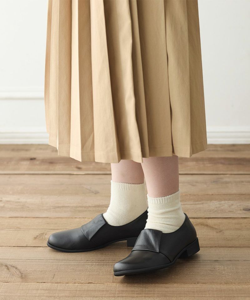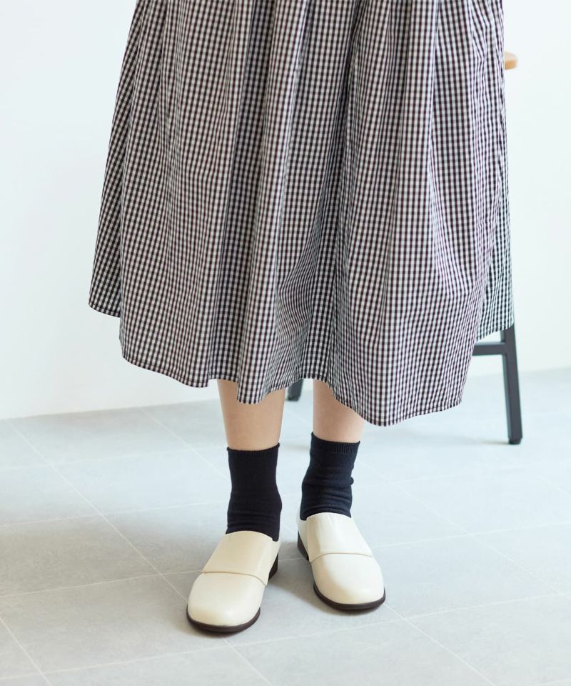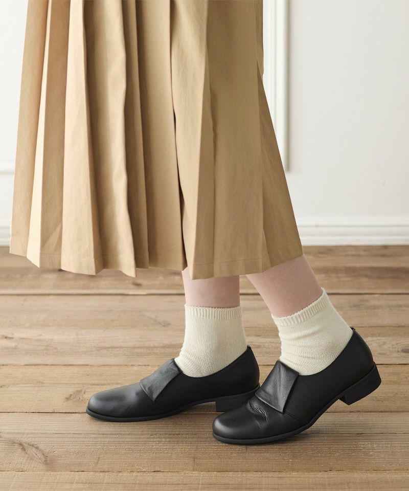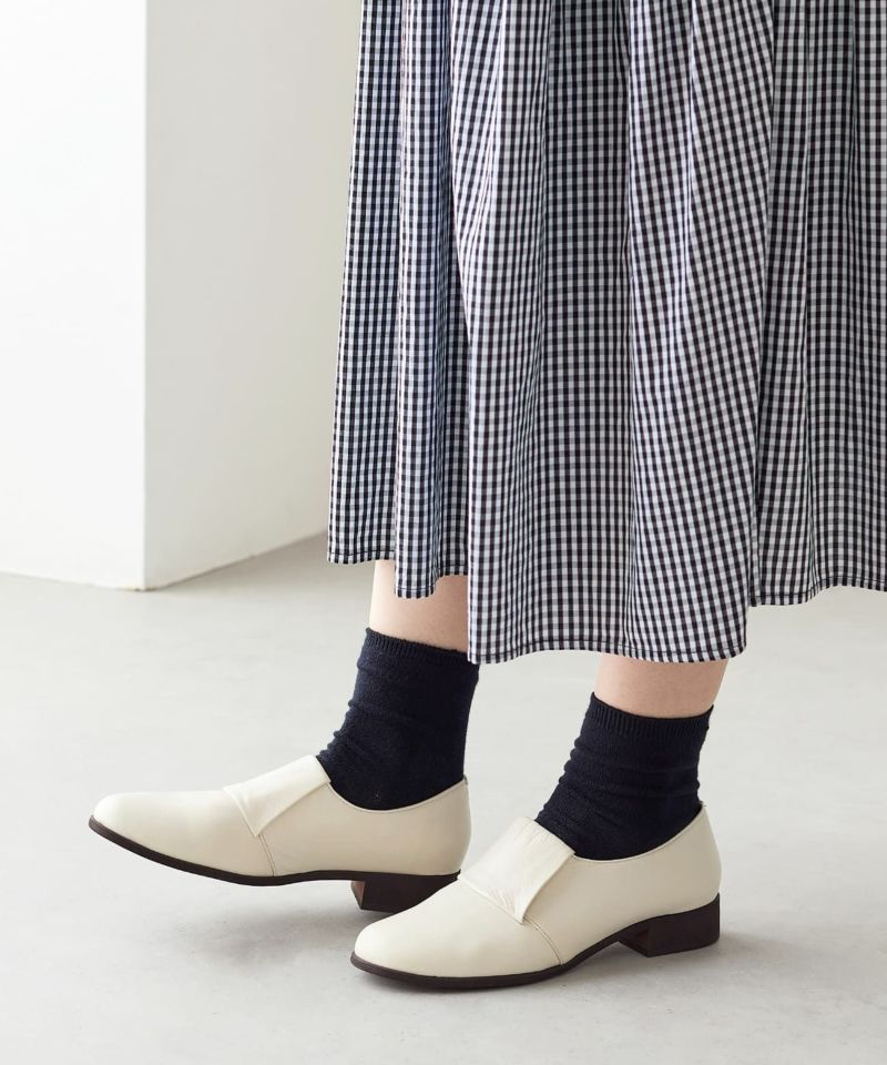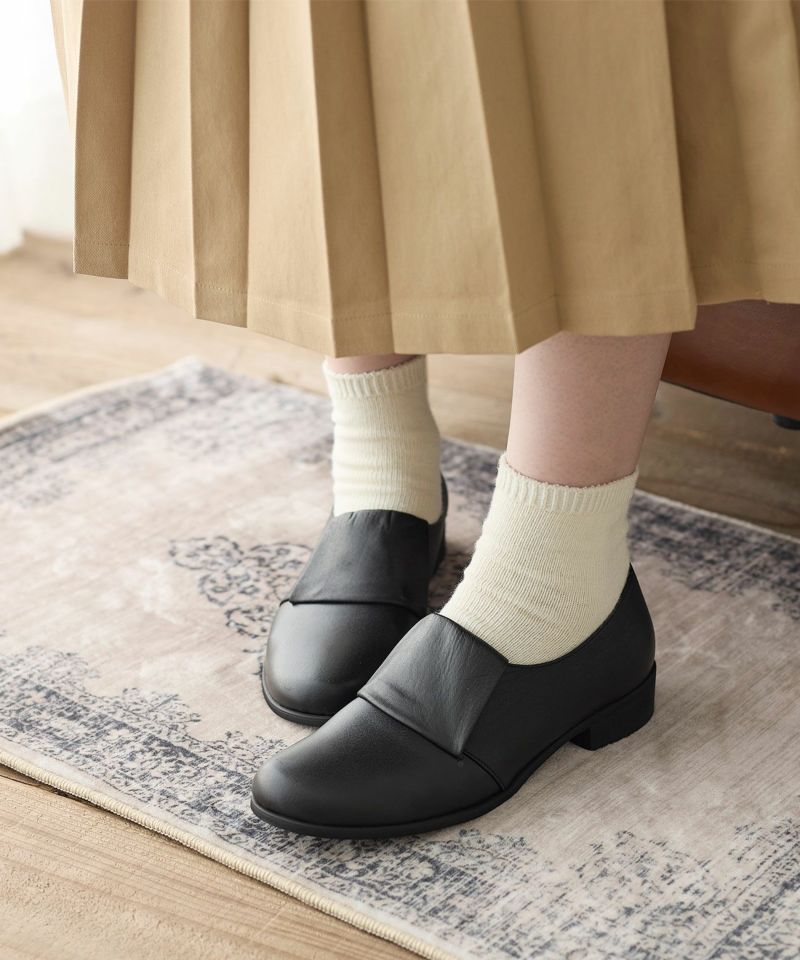 カントリーライクな素朴さのある顔立ちとぽってりとしたアッパーですが、程よいヒールできれいめコーデにもピッタリ寄り添います。