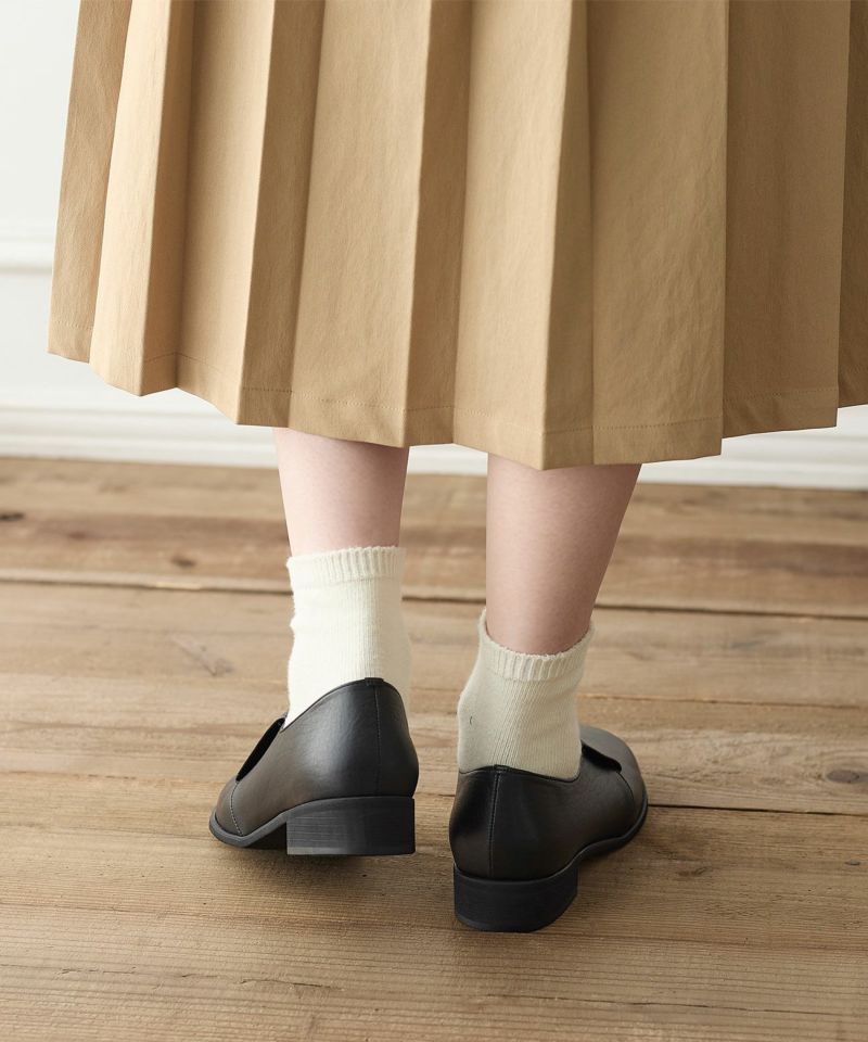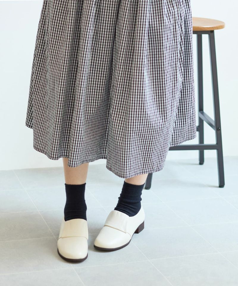 低ヒールでラフなカジュアル感がありつつ、すっきりとした華奢なつま先がコーディネートをクールでリュクスな雰囲気にアップデート