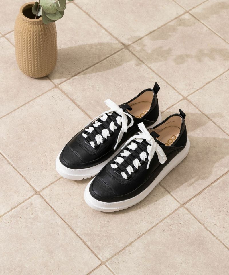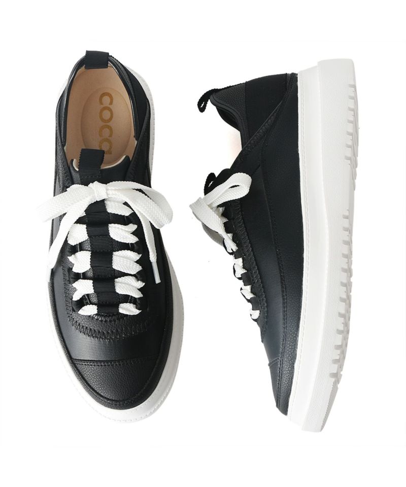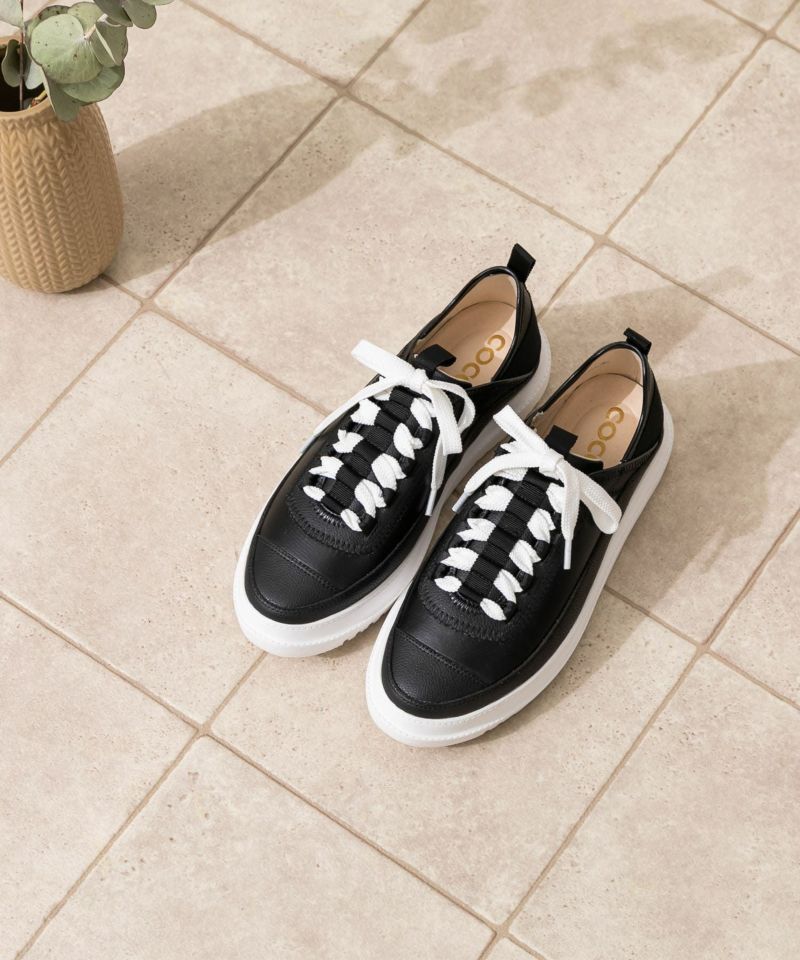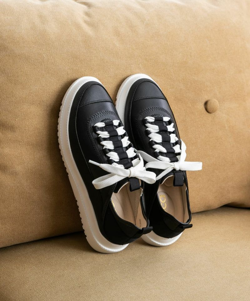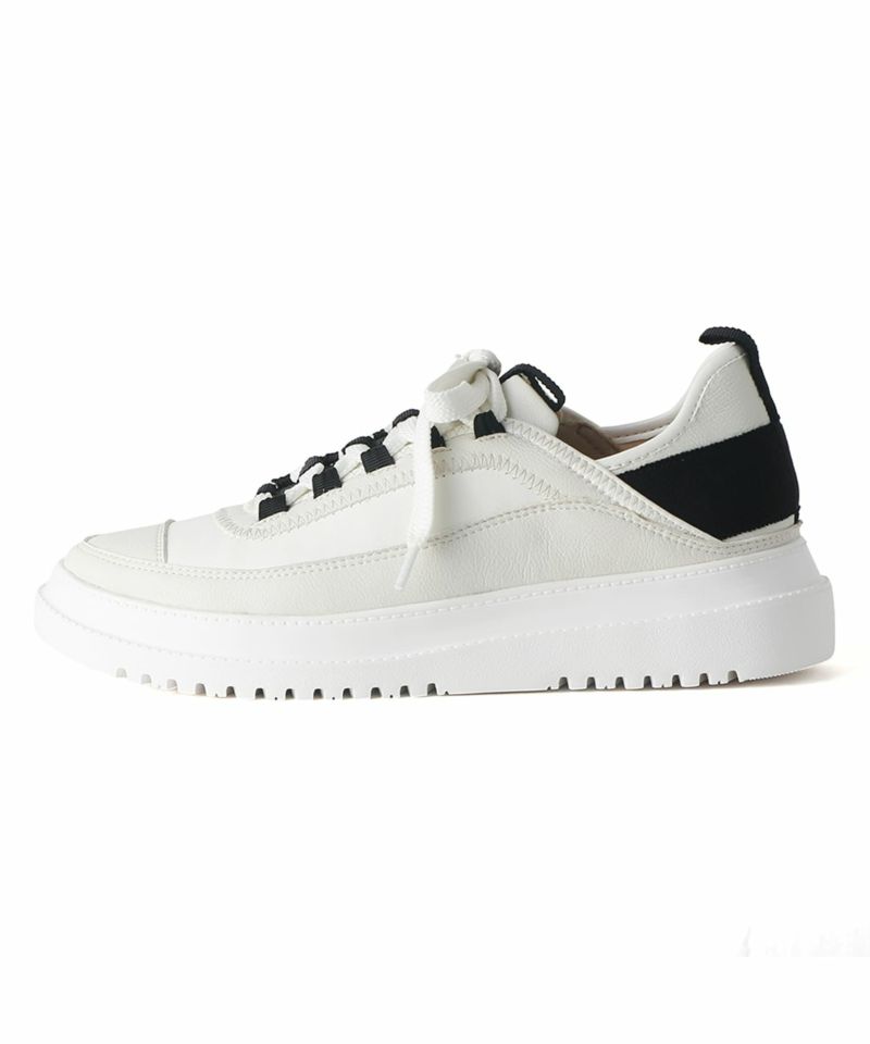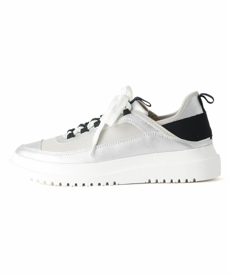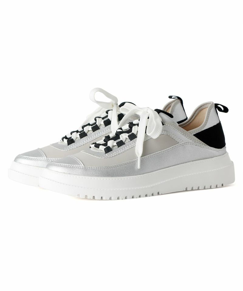サイドのシューレース部分や踵にあしらったグログランリボンが、スニーカーにエレガントなアクセントを加え、カジュアルながらも上品な印象を演出します。