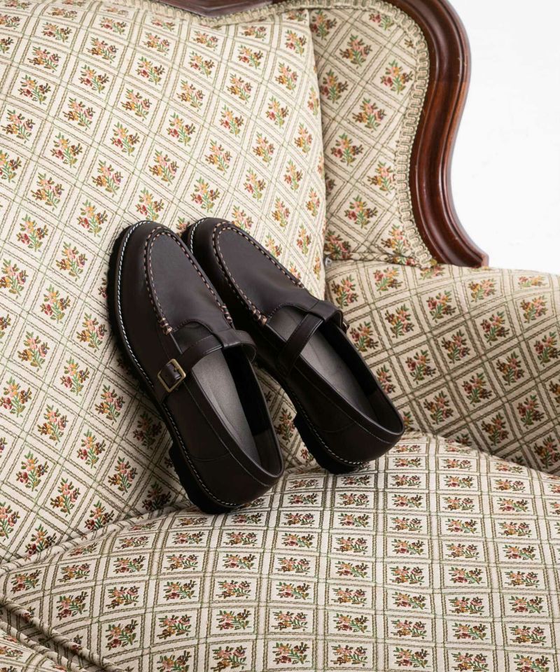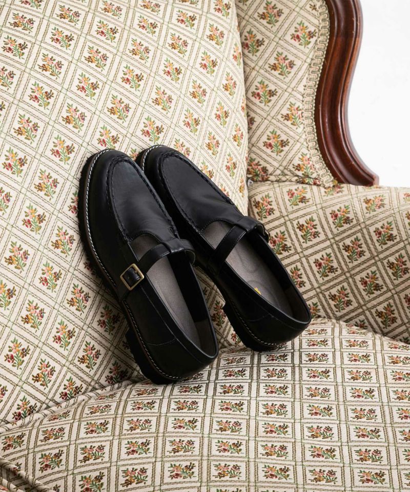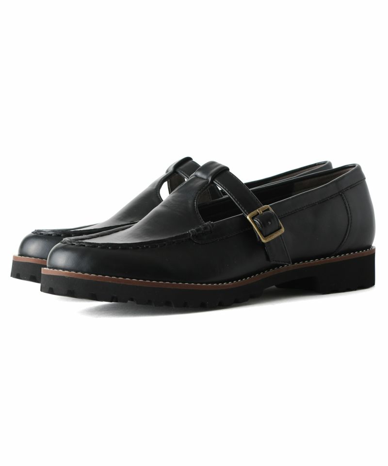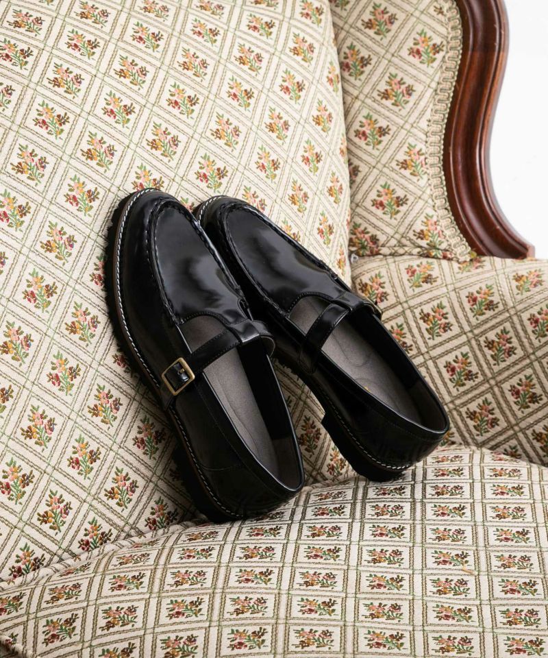 このTストラップシューズは、クラシカルすぎない印象を与えるために、旬の厚底トラックソールを採用。