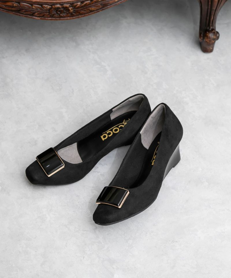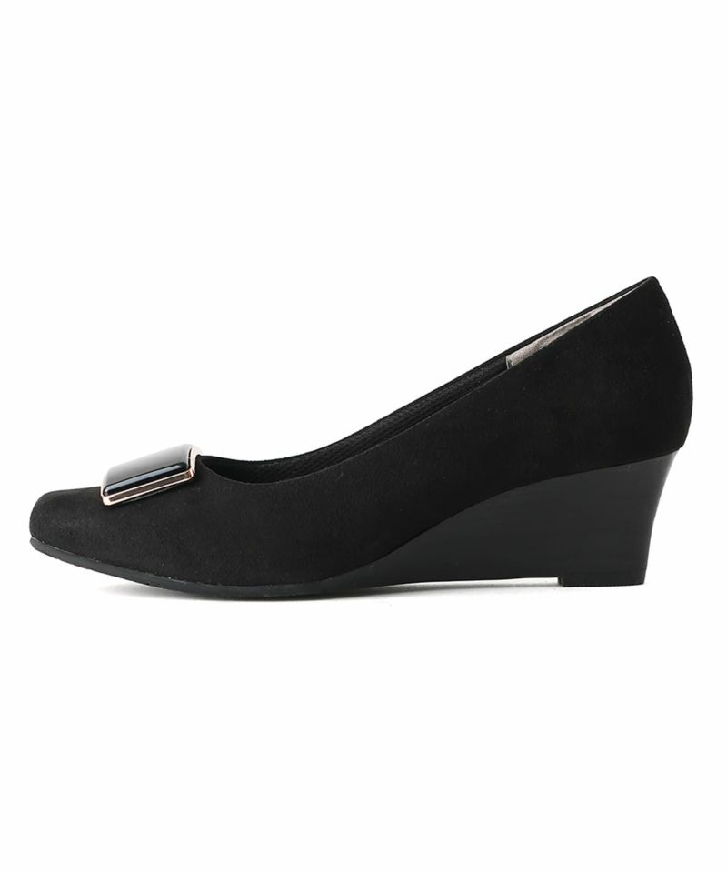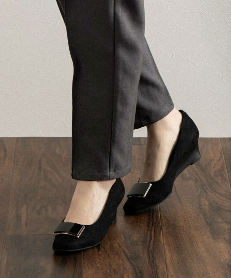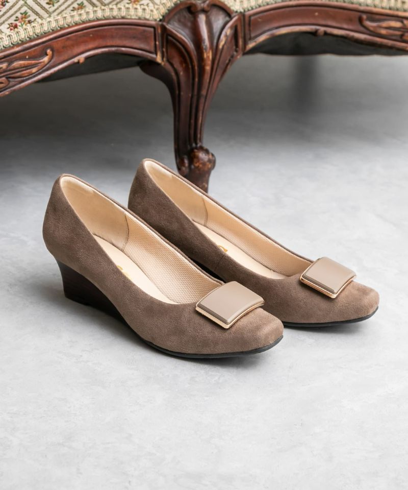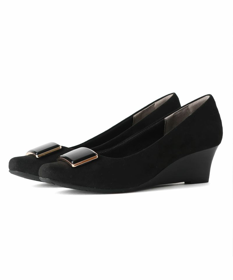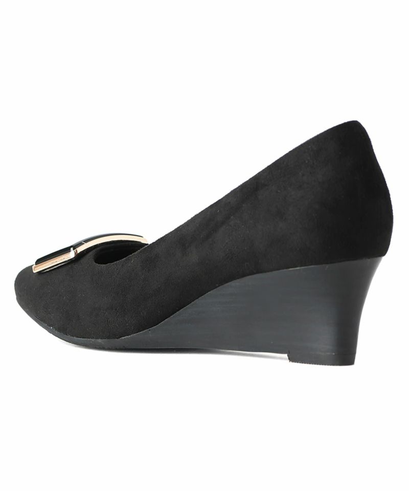 ソフトスクエアトゥバックルウエッジソールパンプス