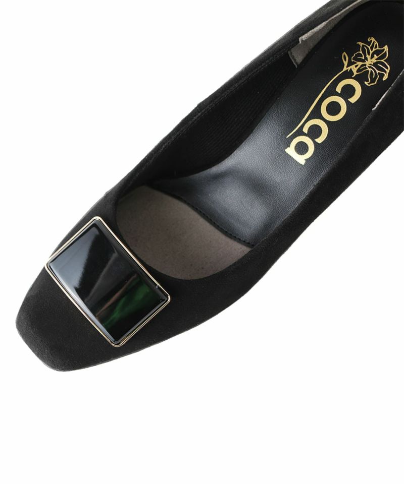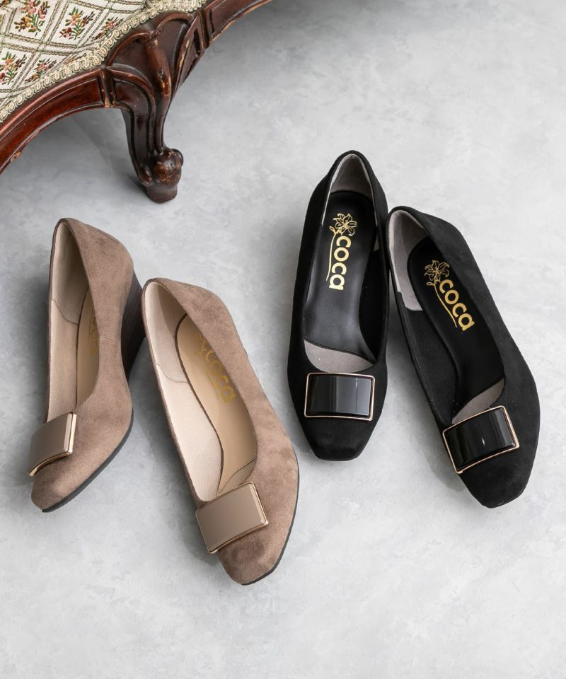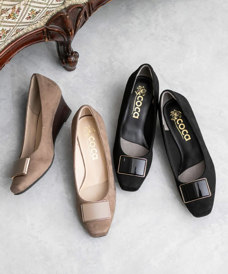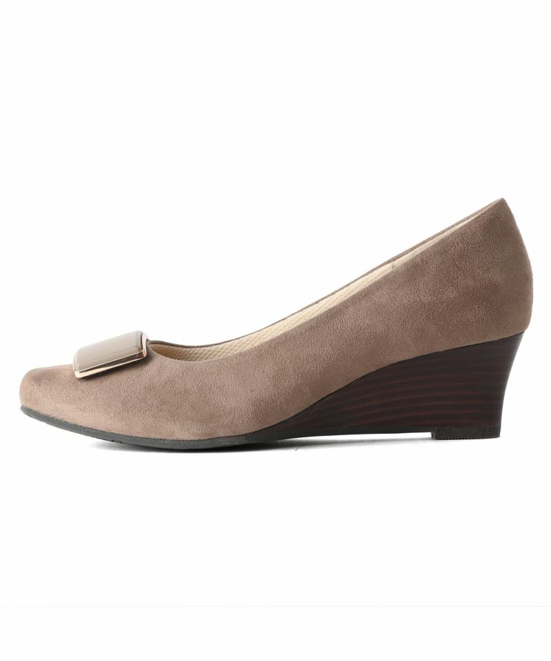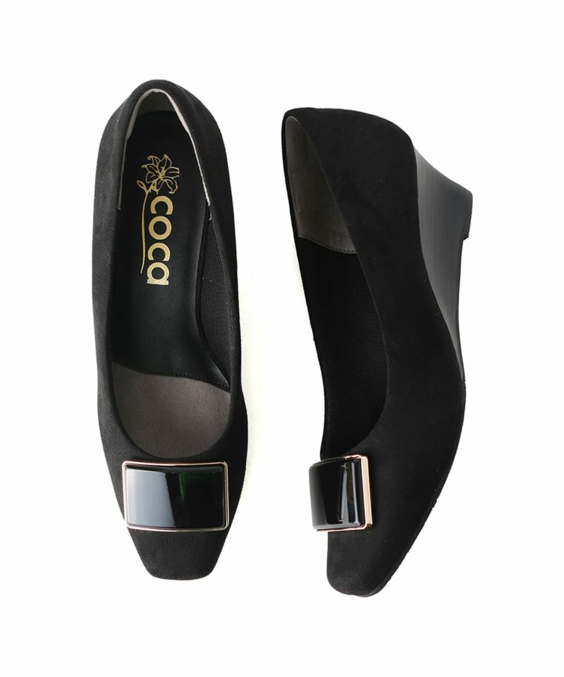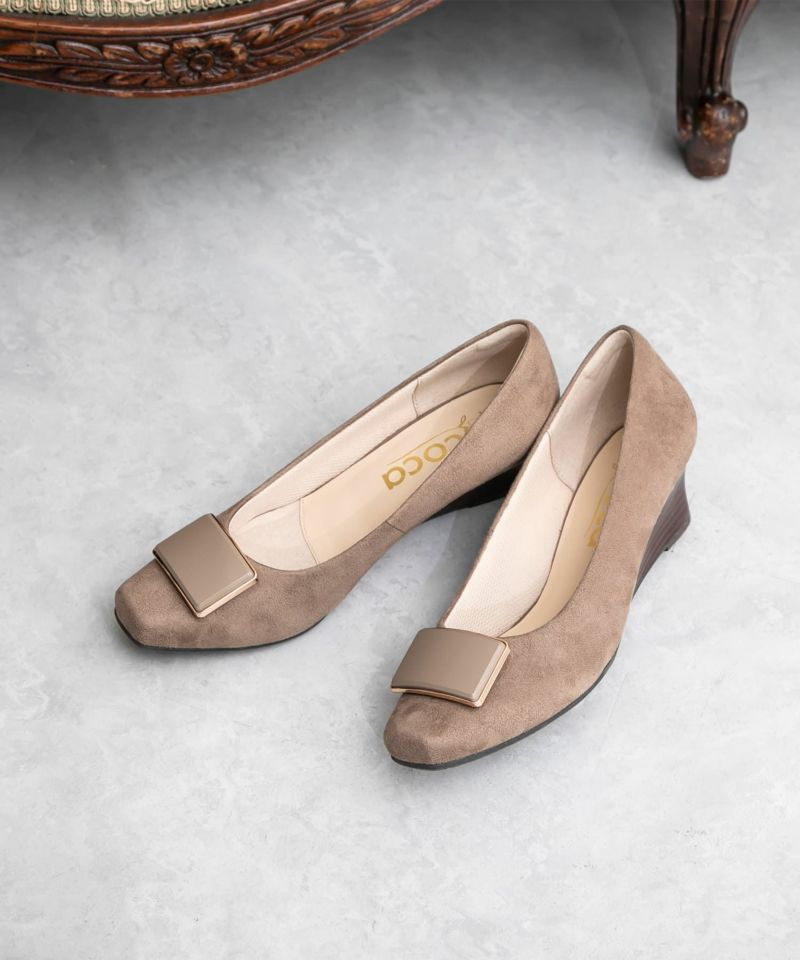 ソフトスクエアトゥバックルウエッジソールパンプス