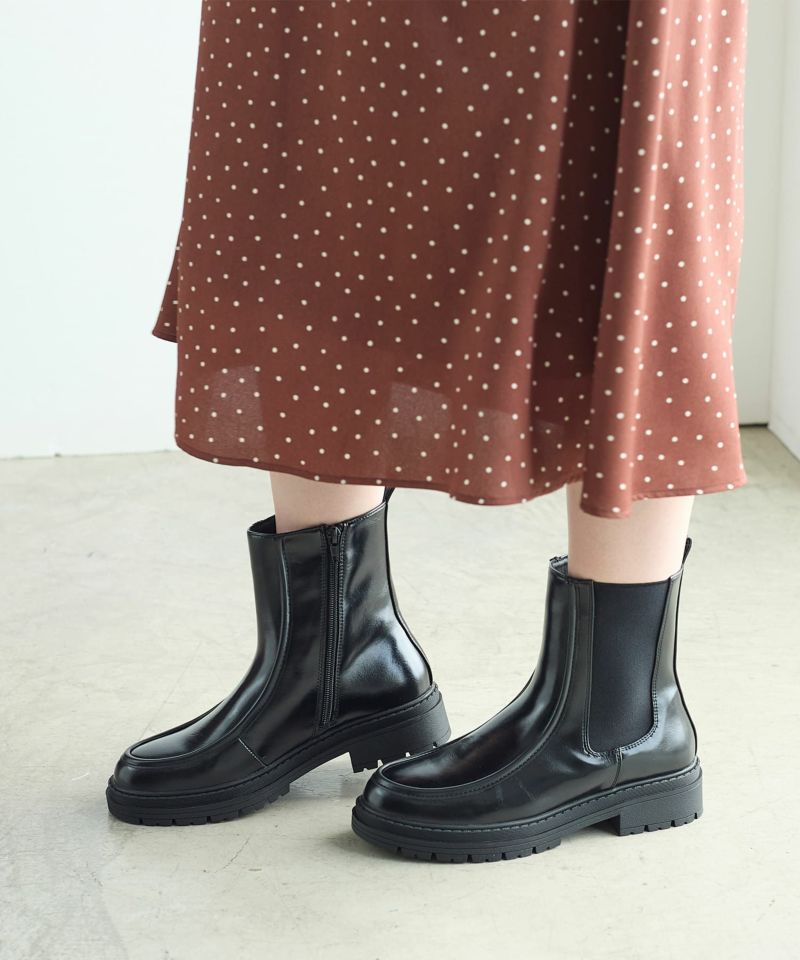 ショート丈 厚底サイドゴアブーツ