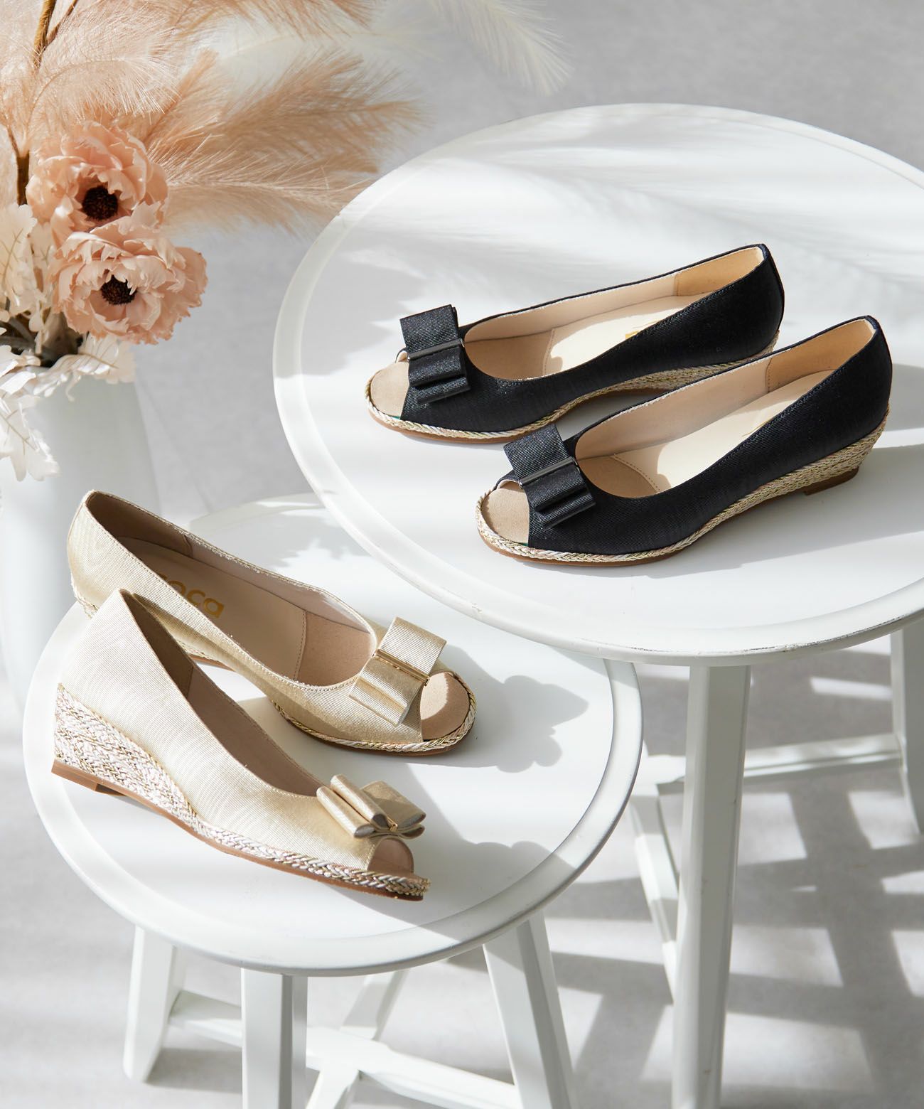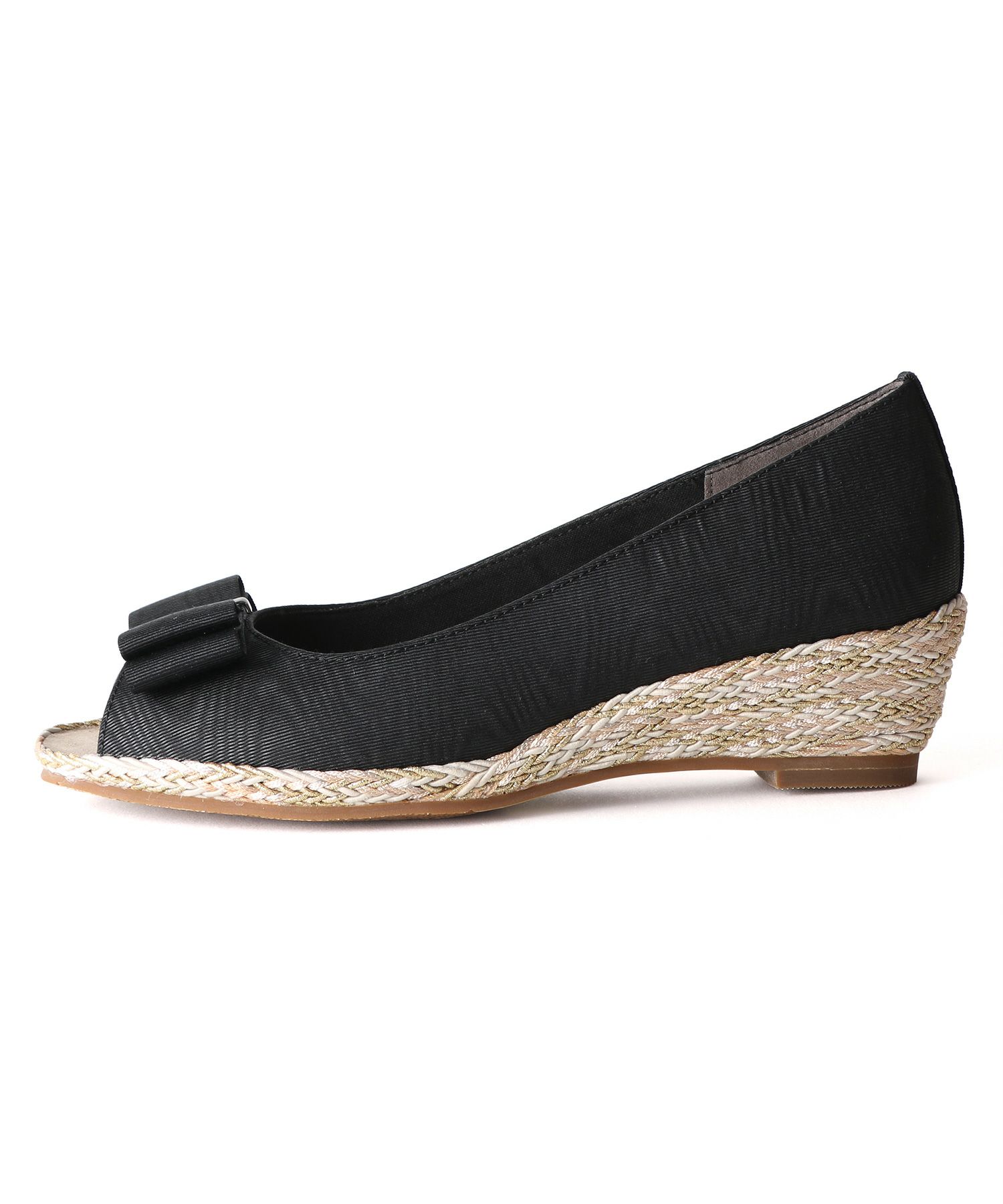 ソフトスクエアトゥバックルウエッジソールパンプス