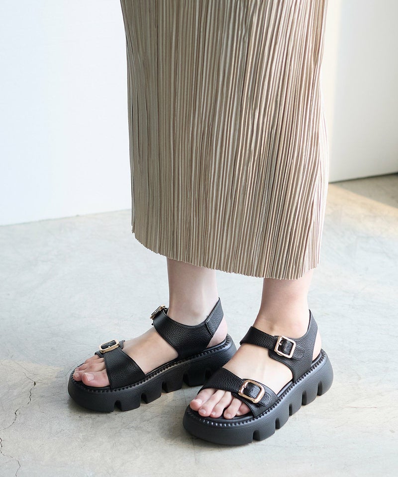 ・存在感のある厚底ソールが、脚長効果を実現し、スタイルアップをサポート