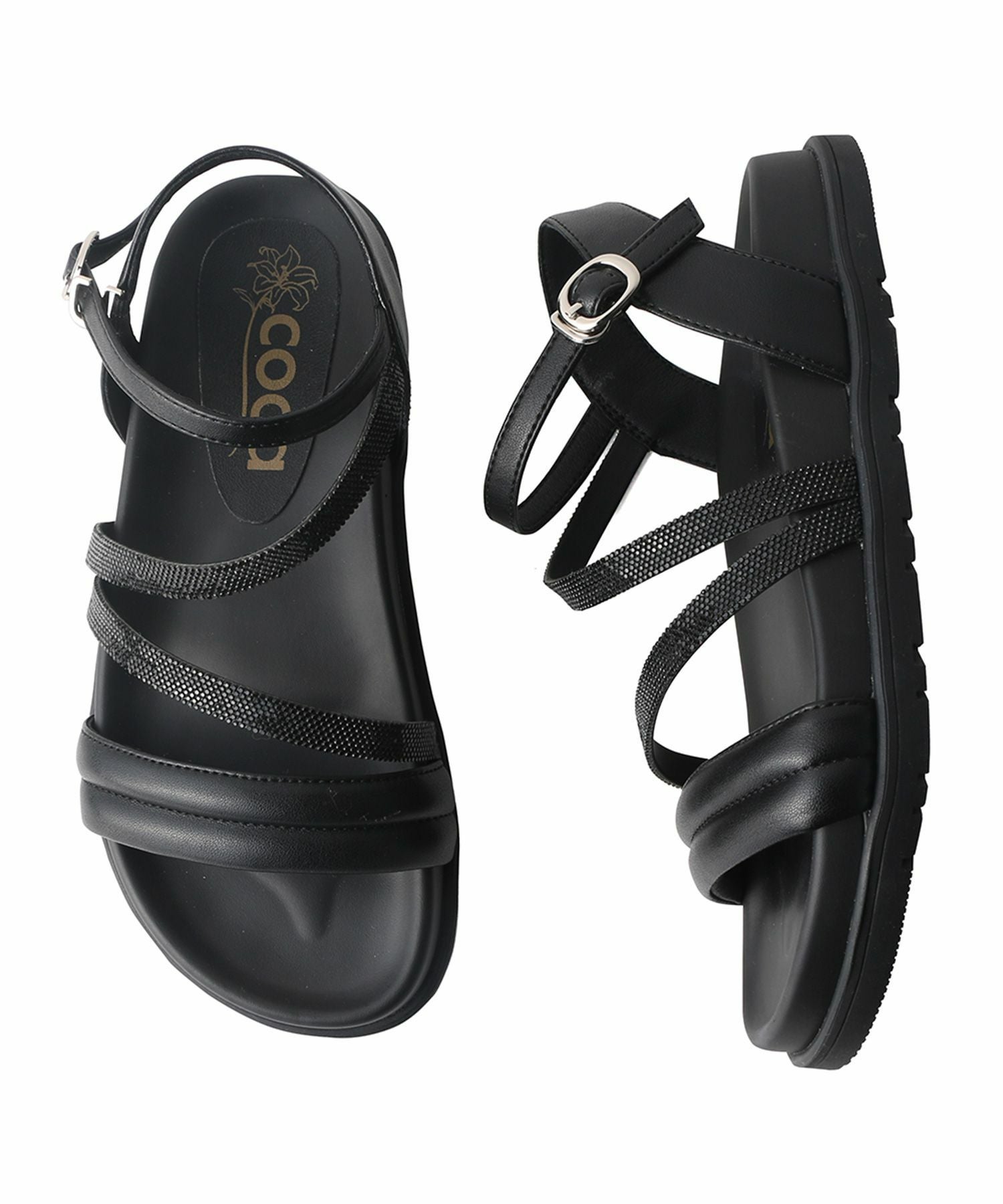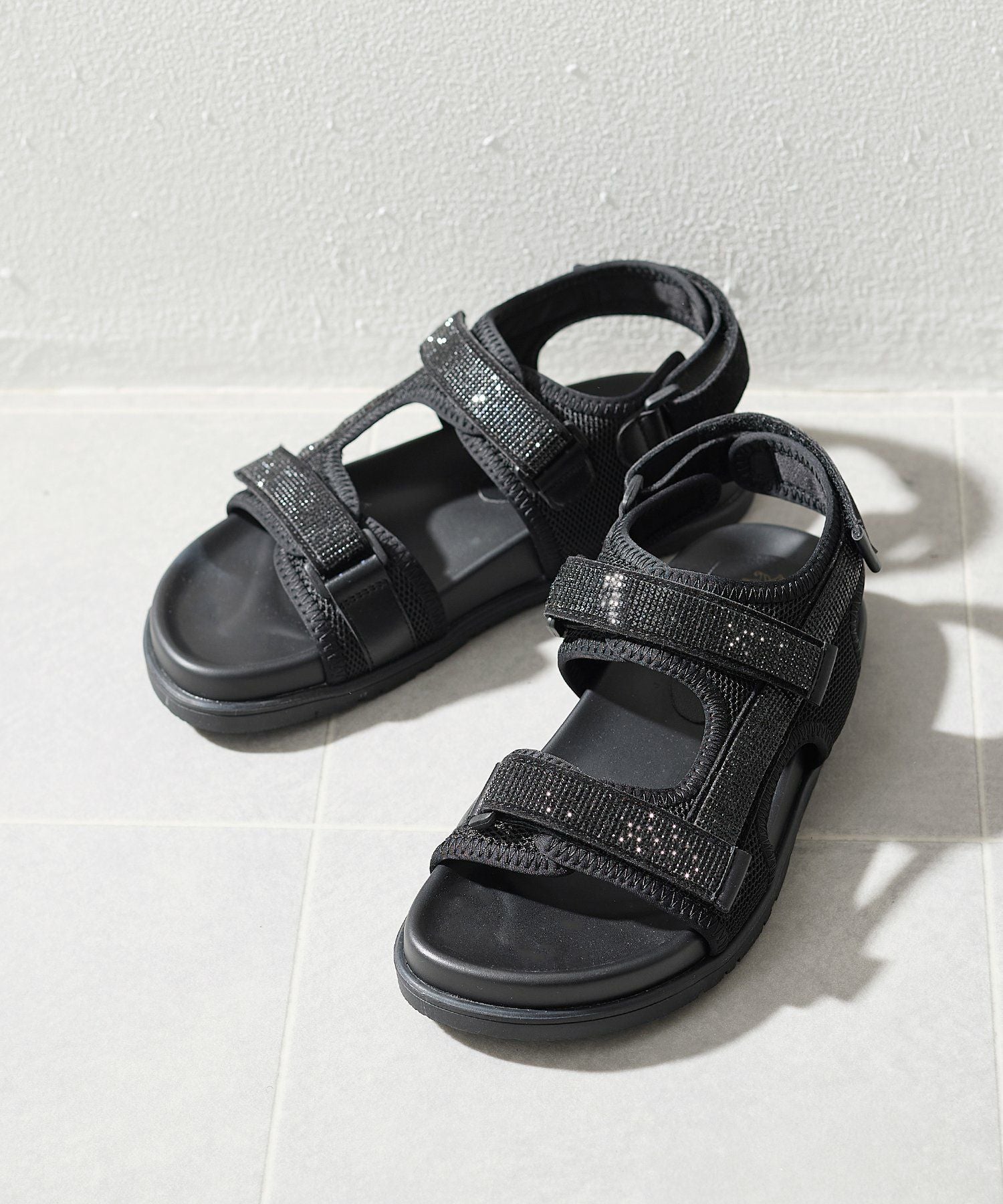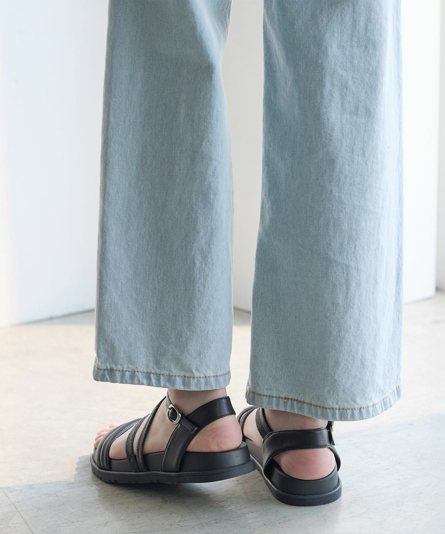 ダブルベルトバックバンド厚底サンダル