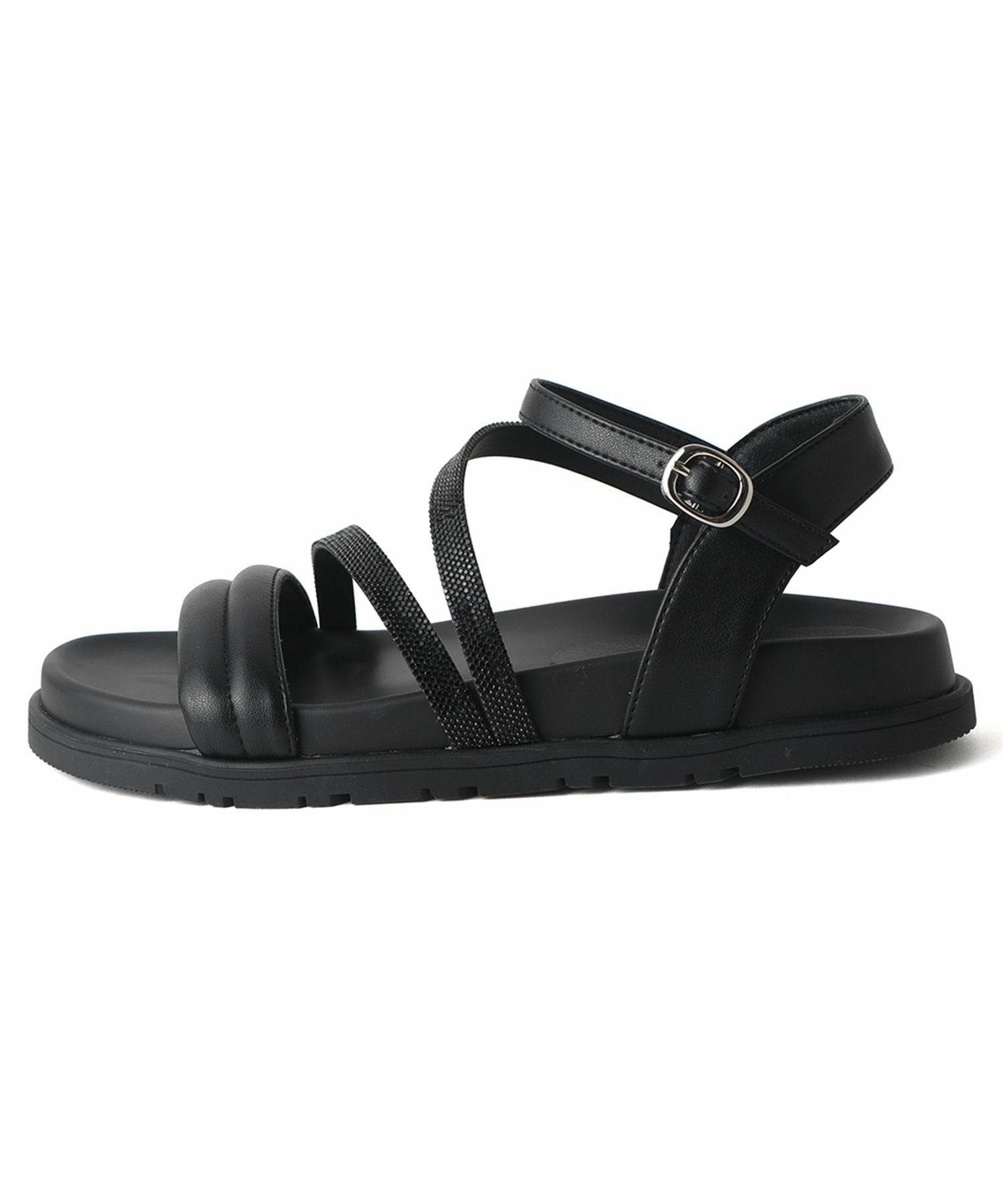 かかとベルトボリュームパデッドクロスサンダル