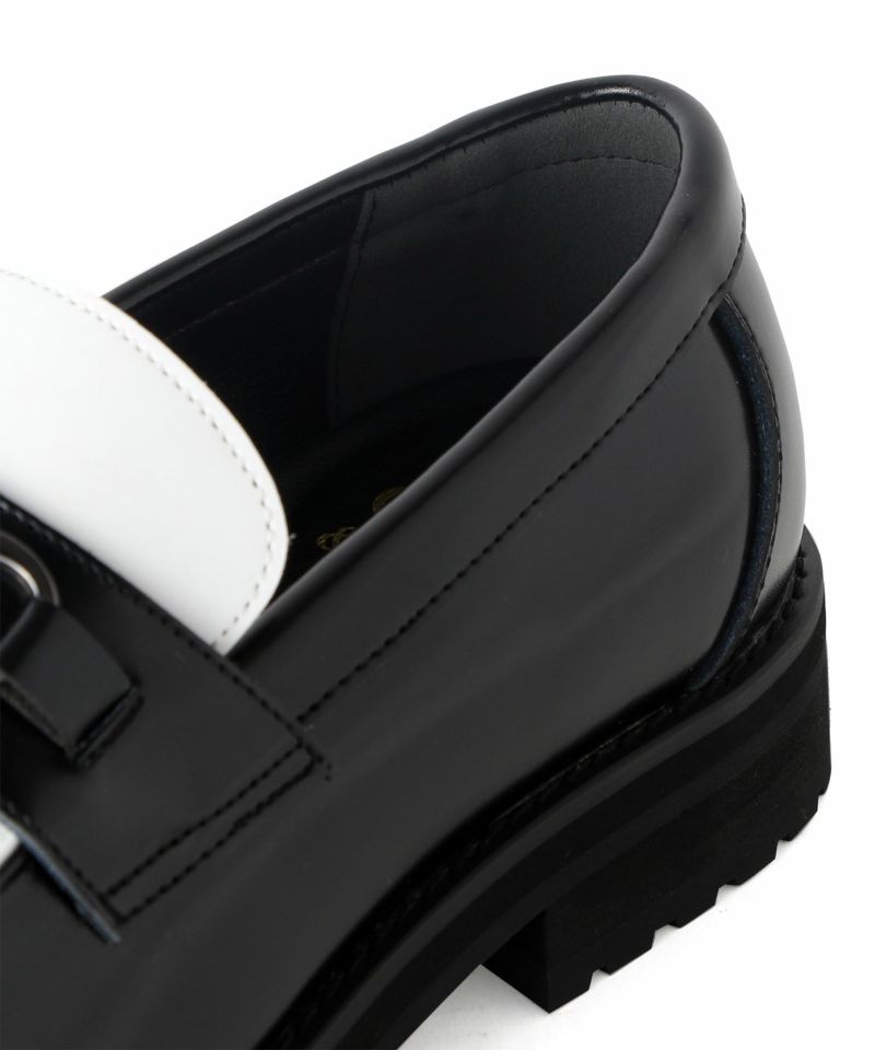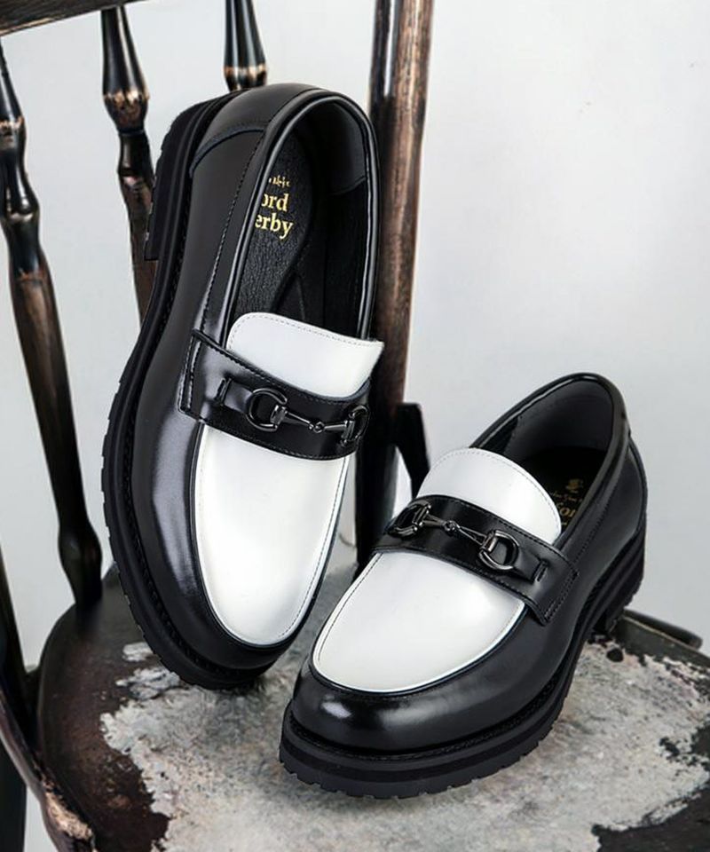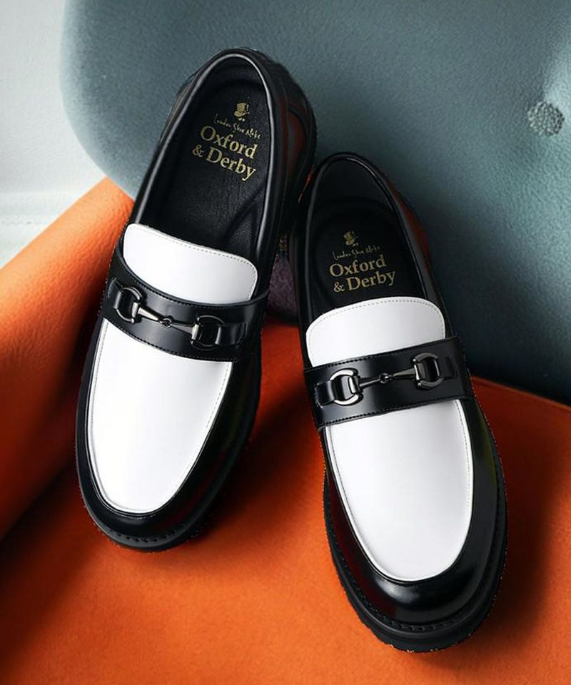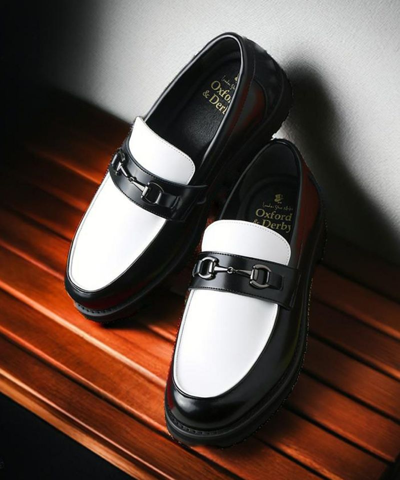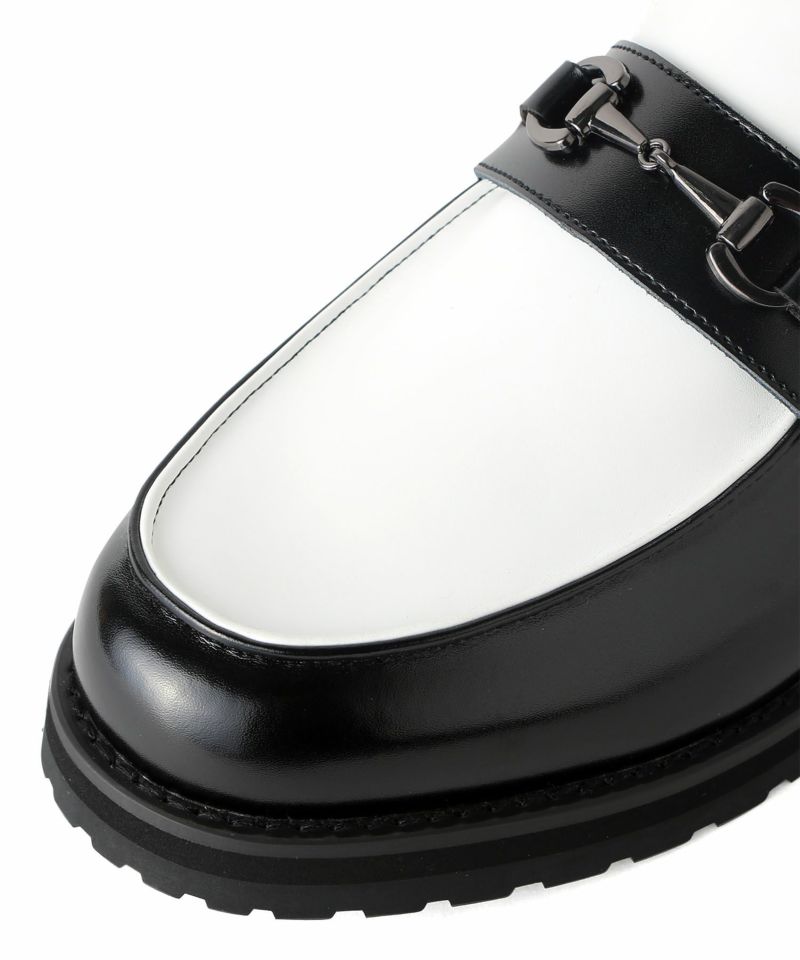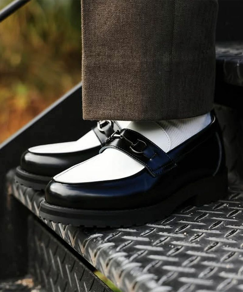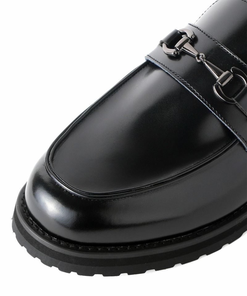 ビットローファーの最大の特徴は、甲の部分に施された「ビット」と呼ばれる馬具に由来するメタルパーツ。