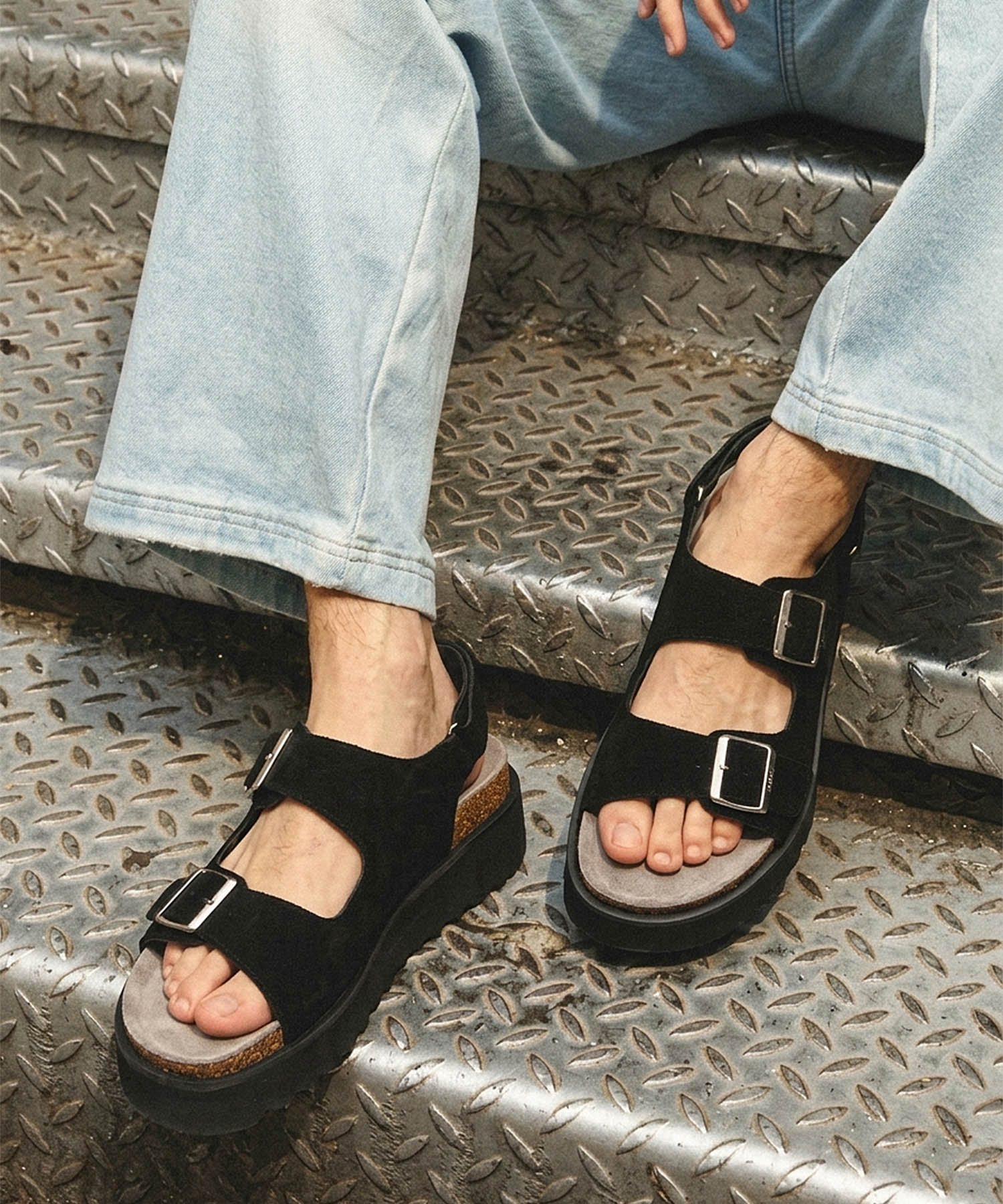 +5㎝ハイソールダブルベルトボリュームデザインサンダル