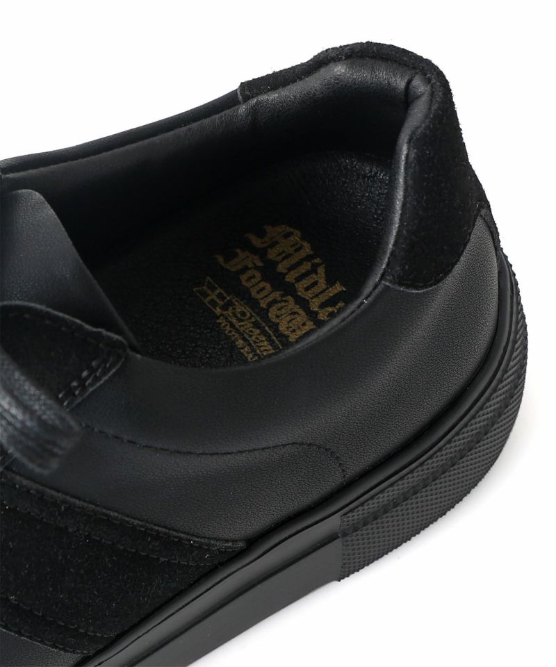 アッパー素材には、甲革基材に革の端材を繊維状に分解し、シート状に加工、再利用した、サスティナブルに配慮したコンポジションレザー(再生革)を採用し、環境に配慮。