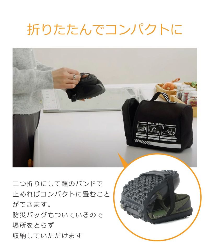 足元から備える新定番、折り畳める防災シューズ