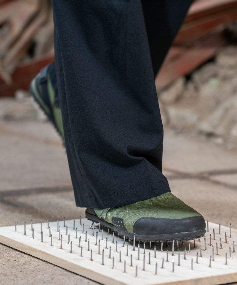 柔軟性を保ちながら、釘やガラス片などの突起物が靴底を突き抜けるのを防ぐ踏み抜き防止構造になっており、思わぬトラブルや危険から足元をしっかりと守ります。