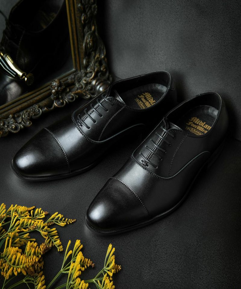 Midland Footwearsのストレートチップは、幅広の日本人の足でもスマートに見せることができる細すぎず、太すぎない絶妙なフォルムが大人の男性らしいエレガントな品格を演出。