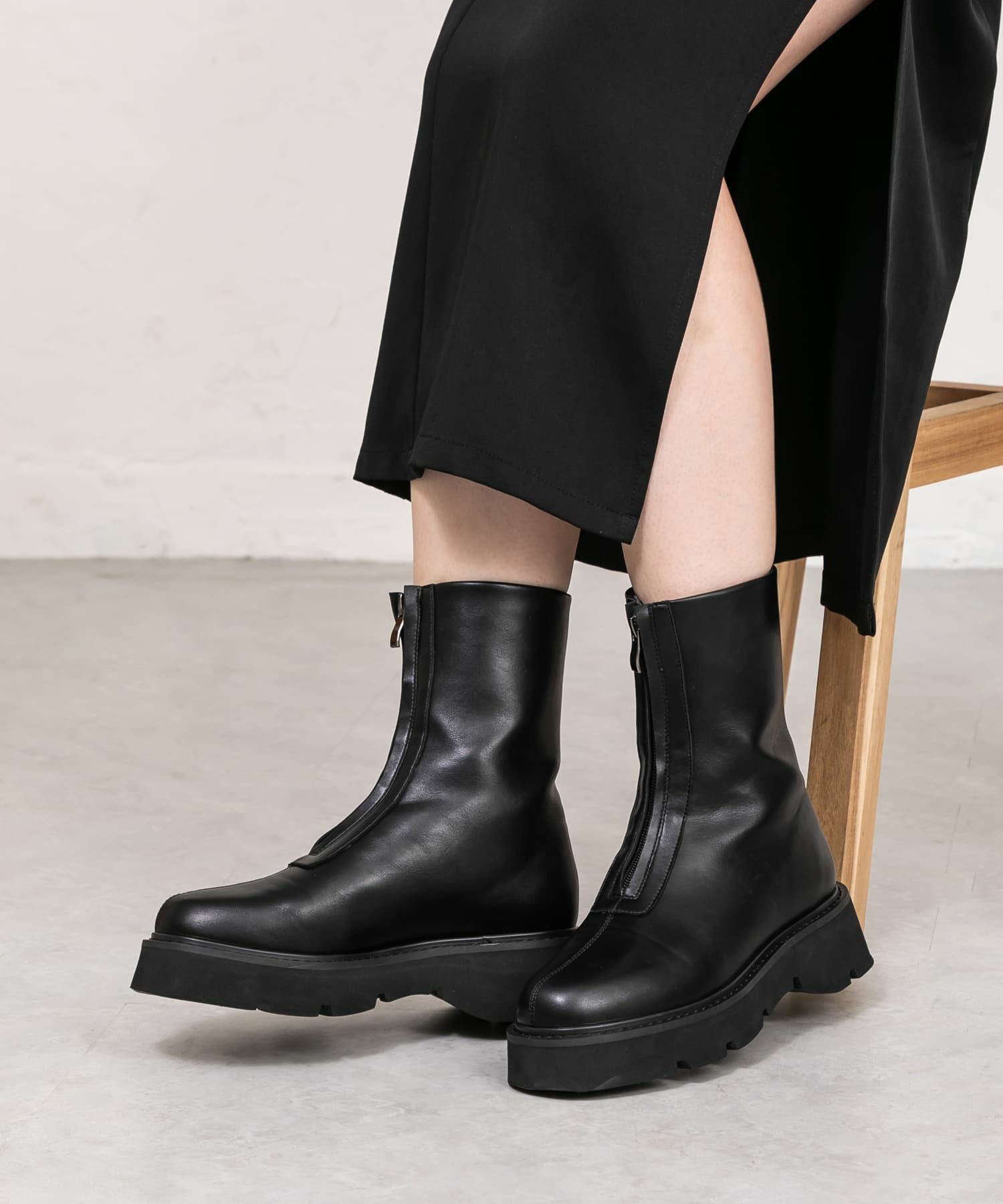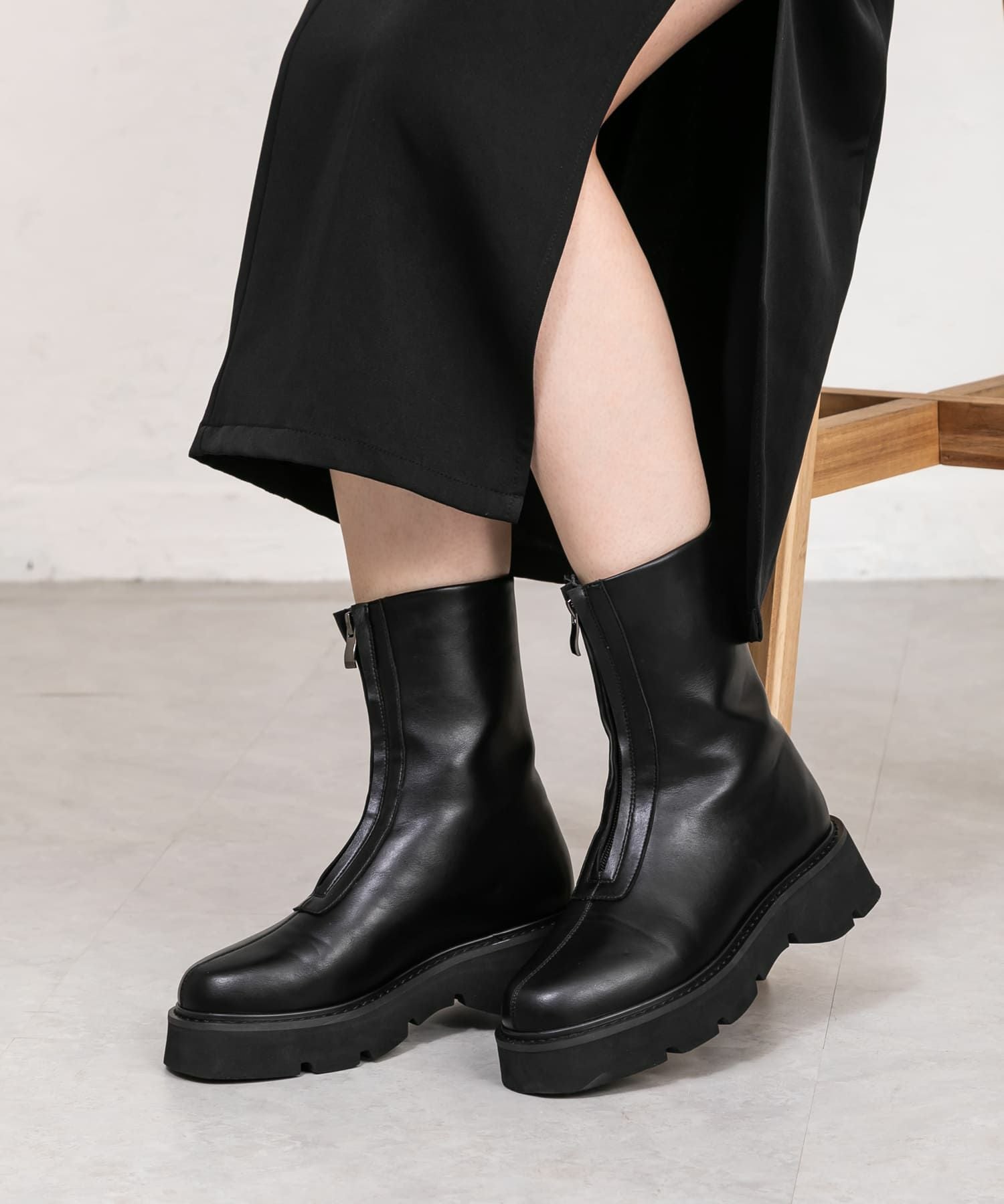厚底軽量フロントファスナーミドルブーツ