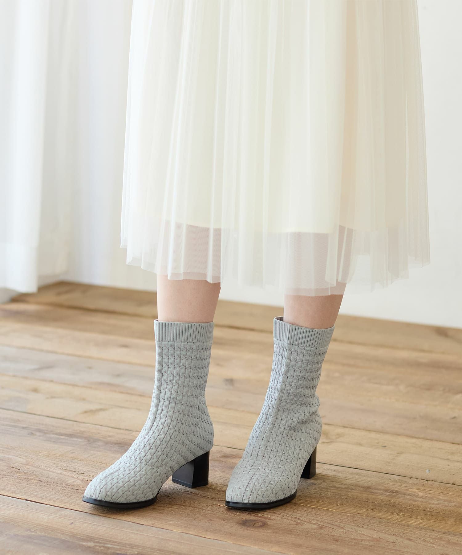 スクエアトゥリブニットソックスブーツ