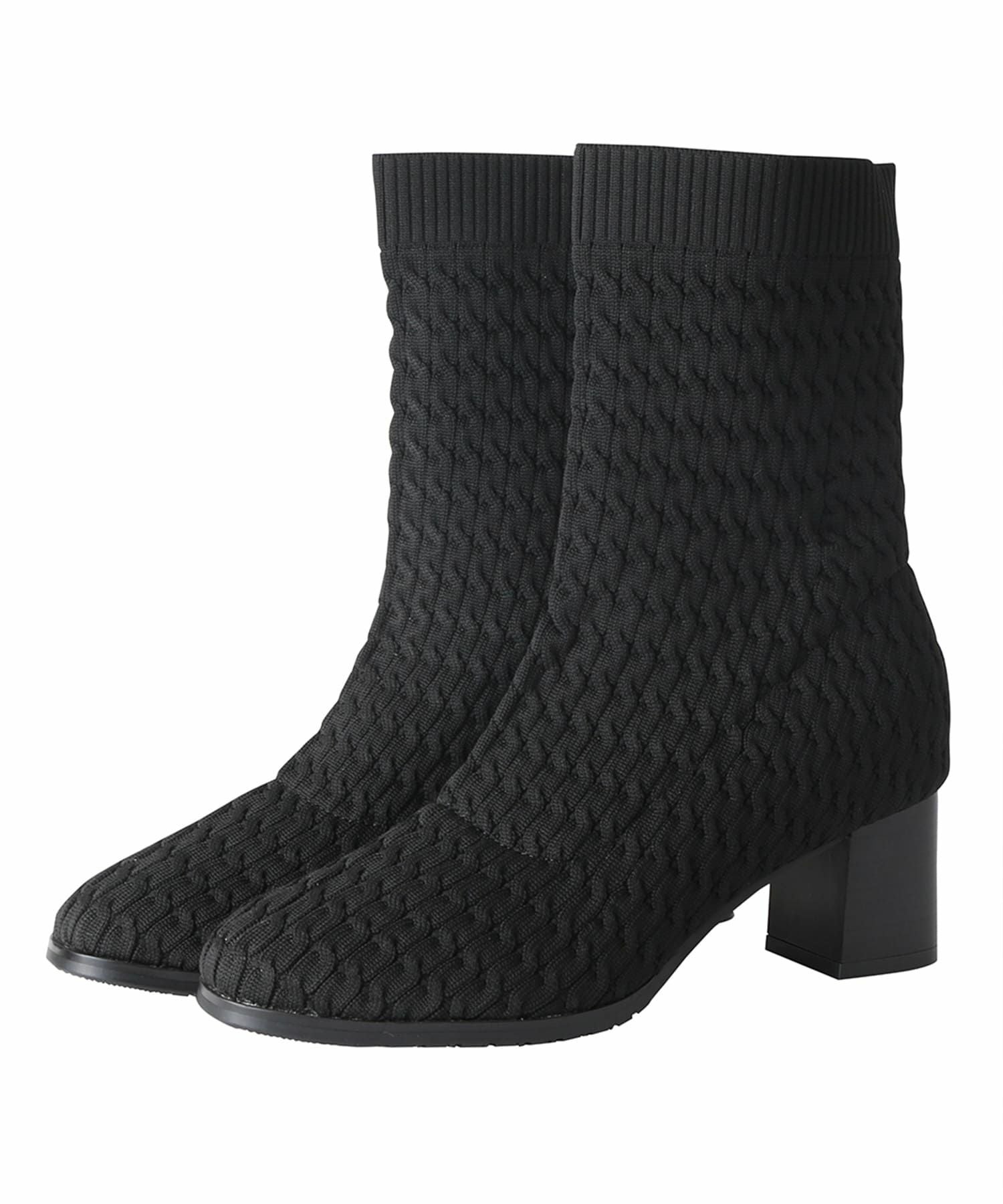 立体編みデザインスクエアトゥニットブーツ