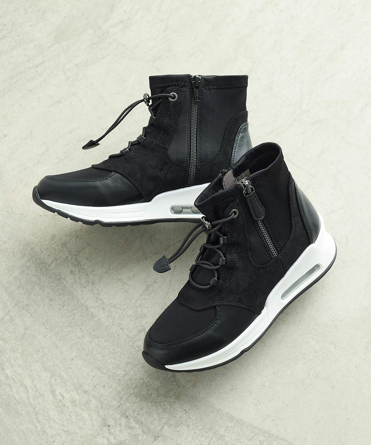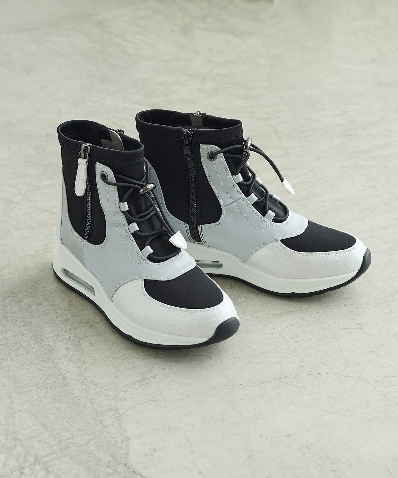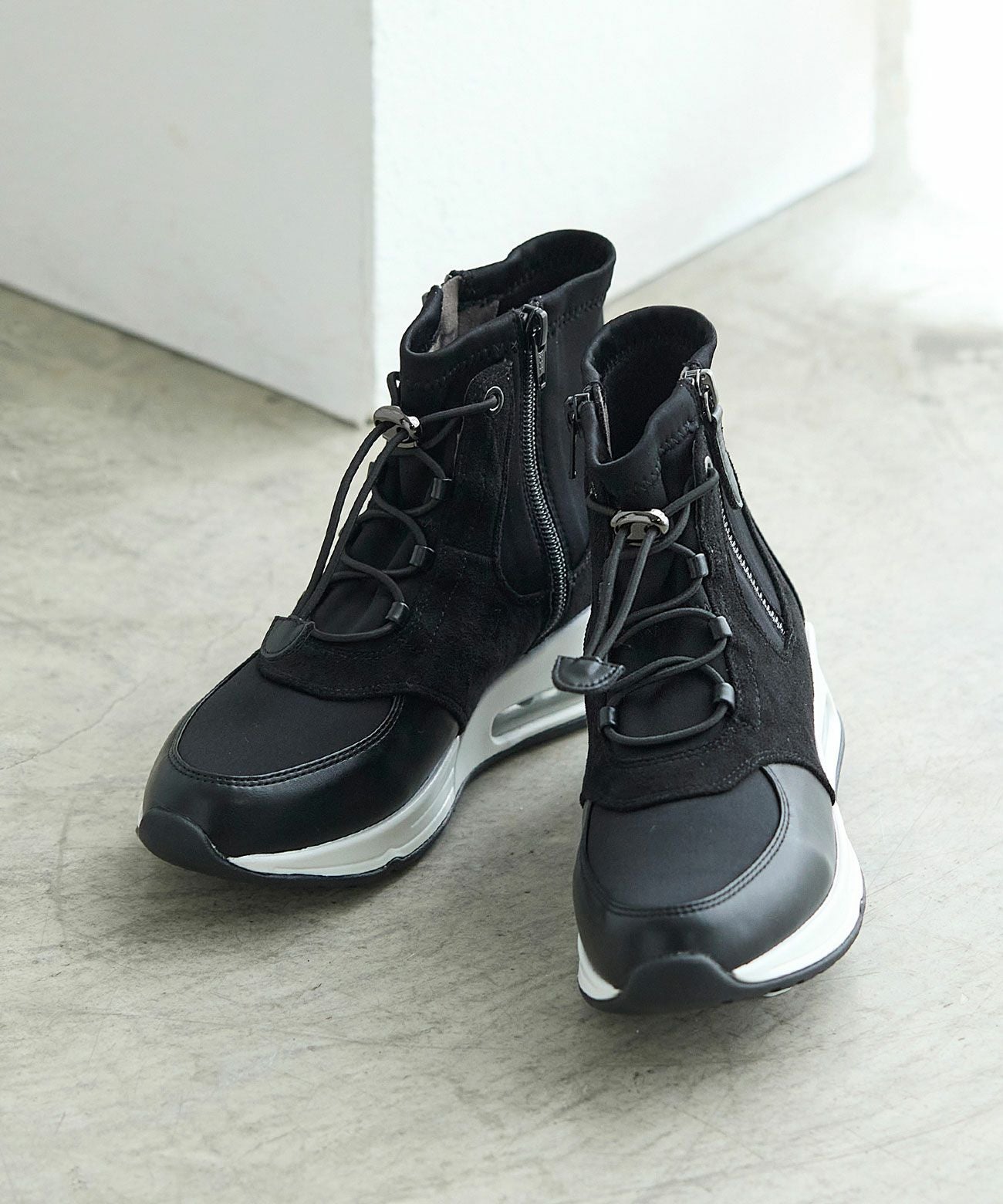フロントジップクッションソールスニーカーブーツ