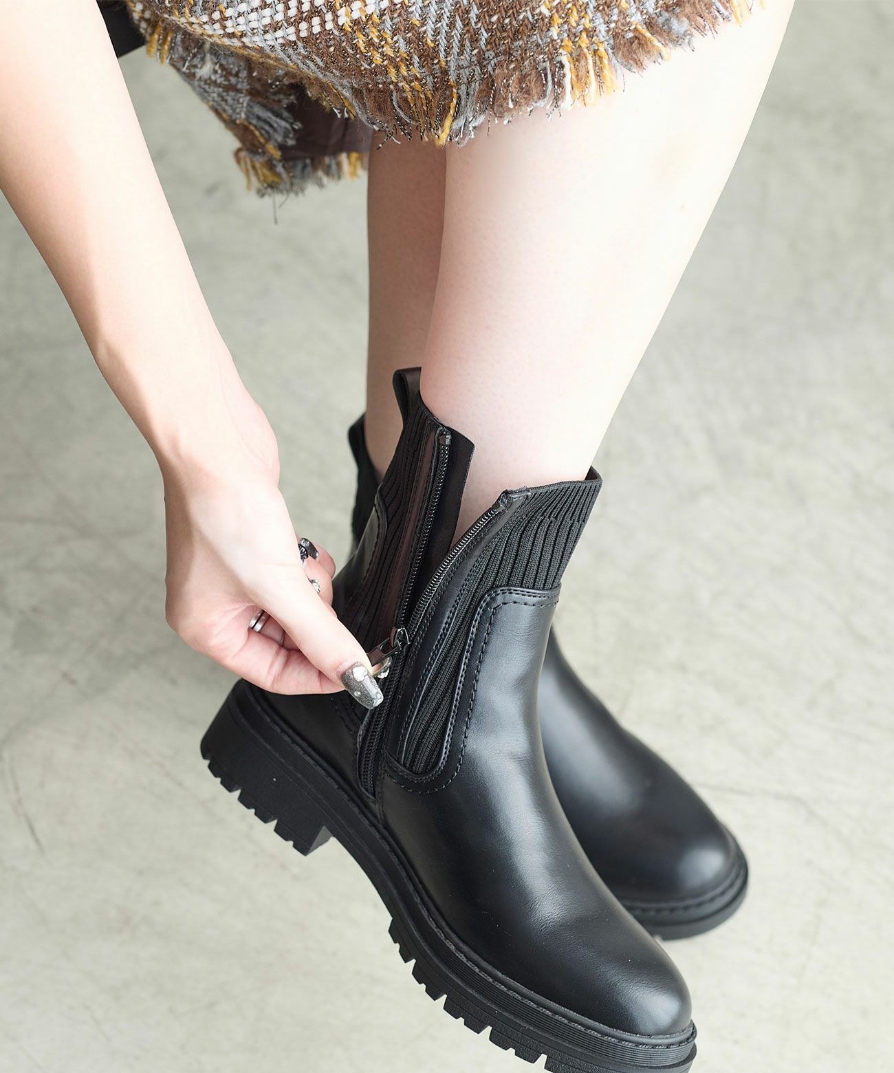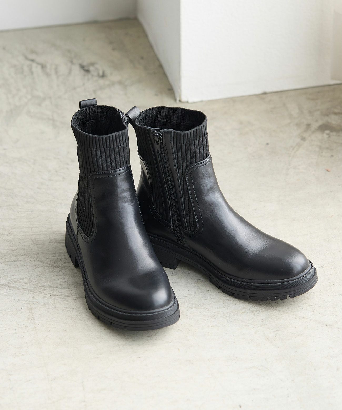 リブニット切り替えソックスブーツ